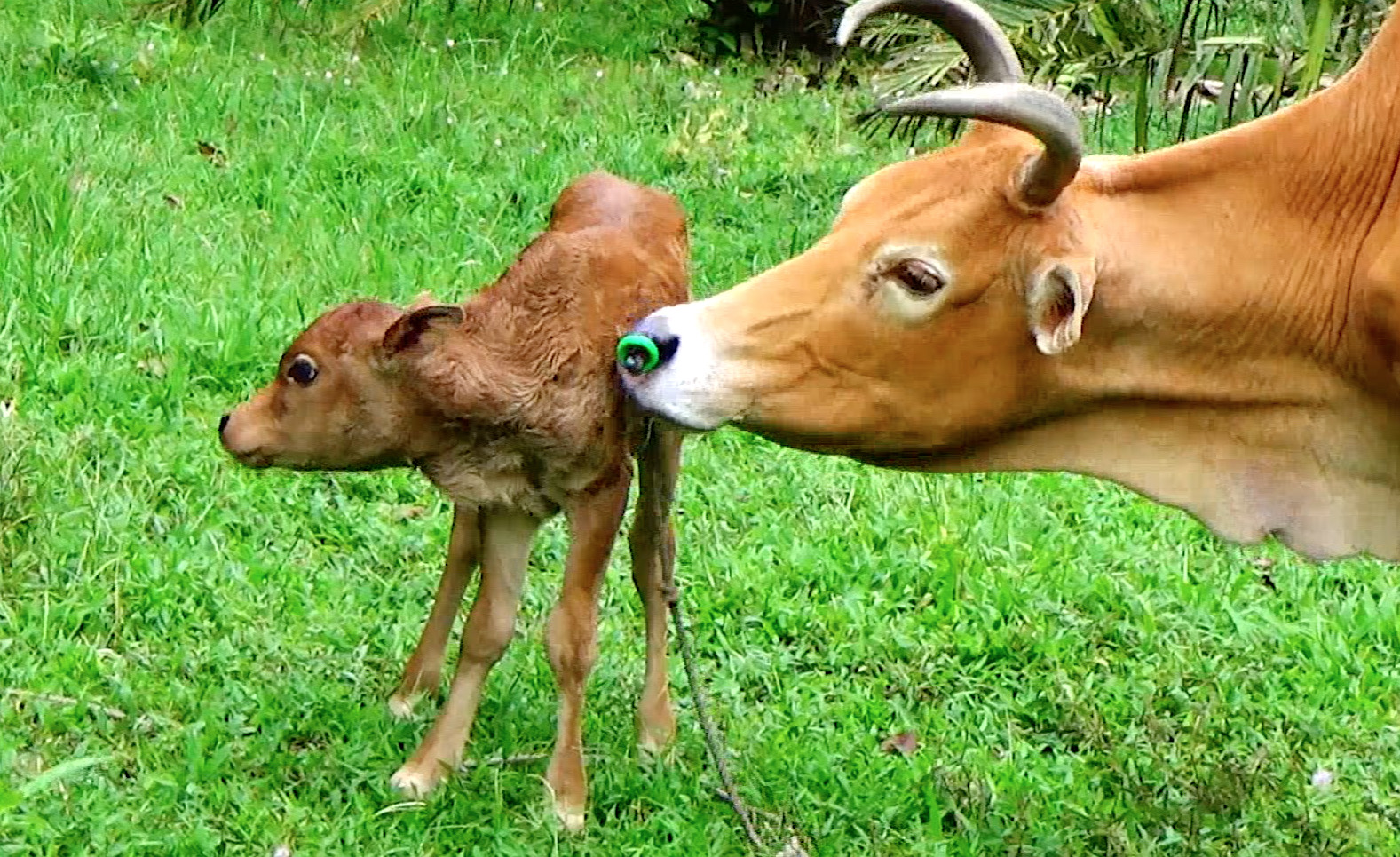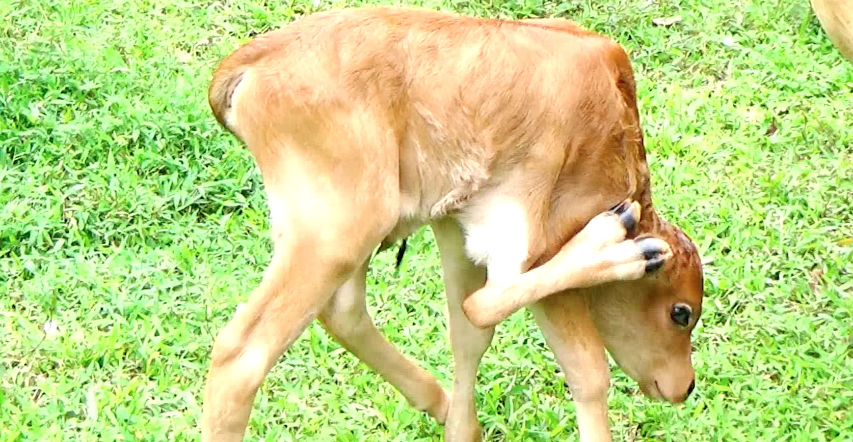 ตรัง 6 ม.ค.- คอหวยฟังข่าวนี้อาจหูผึ่ง ที่จังหวัดตรัง มีลูกวัวเพศผู้ที่เพิ่งคลอด แต่ขาหลังงอกขึ้นมาอีก 1 ขาเป็นขาที่ 5 มีเท้า 2 กีบคล้ายกับมี 6 ขา เจ้าของตั้งชื่อว่า “เจ้าโชคดี“