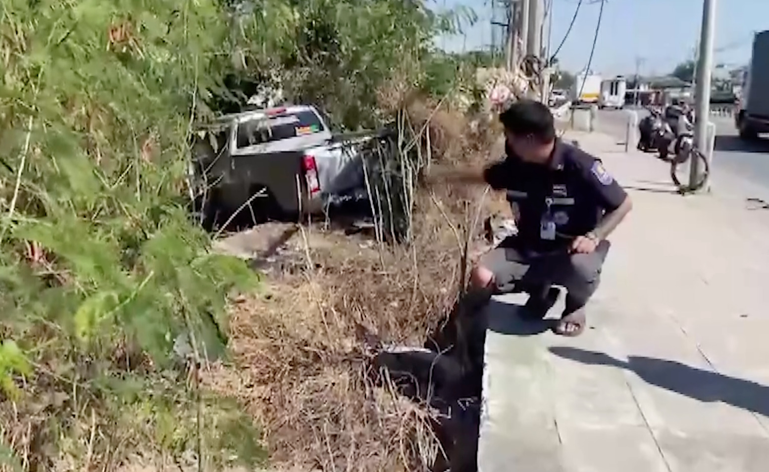 ตำรวจเข้าตรวจสอบอุบัติเหตุกระบะหลุดโค้งพุ่งชนบ้าน เหตุเกิดริมสายพานทอง-บ้านเก่า ช่วงบริเวณโค้ง 105 เอฟเอ็ม ที่เกิดเหตุพบรถยนต์กระบะยี่ห้ออีซูซุสีขาว พุ่งเข้าชนยังบ้านเลขที่ 33/4 หมู่ที่ 7 ตำบลบ้านเก่า ได้รับความเสียหายบริเวณประตูหน้าบ้านและเสาหน้าบ้านหัก 1 ต้น ส่วนรถยนต์ได้รับความเสียหายด้านหน้าพังยับ ล้อหน้าด้านซ้าย และล้อหลังแม็กและยางแตก นอกจากนี้ยังมีของหลวงเสียหาย ทั้งเสาไฟฟ้าริมทางริมทางหักอีกสองต้น