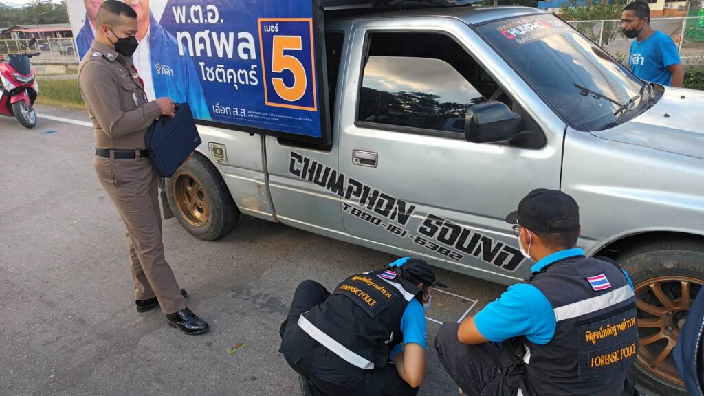 7 มกราคม 2565 ผู้สื่อข่าวได้รับแจ้งเหตุคนร้ายขับขี่รถจักรยายนต์ ใช้อาวุธปืนยิงใส่รถแห่ของ พล.ต.อ.ทศพล โชติคุตร์ ผู้สมัครเลือกตั้งซ่อม ส.ส. เขต 1 ชุมพร เบอร์ 5 บนถนนเส้นชุมพร-ระนอง