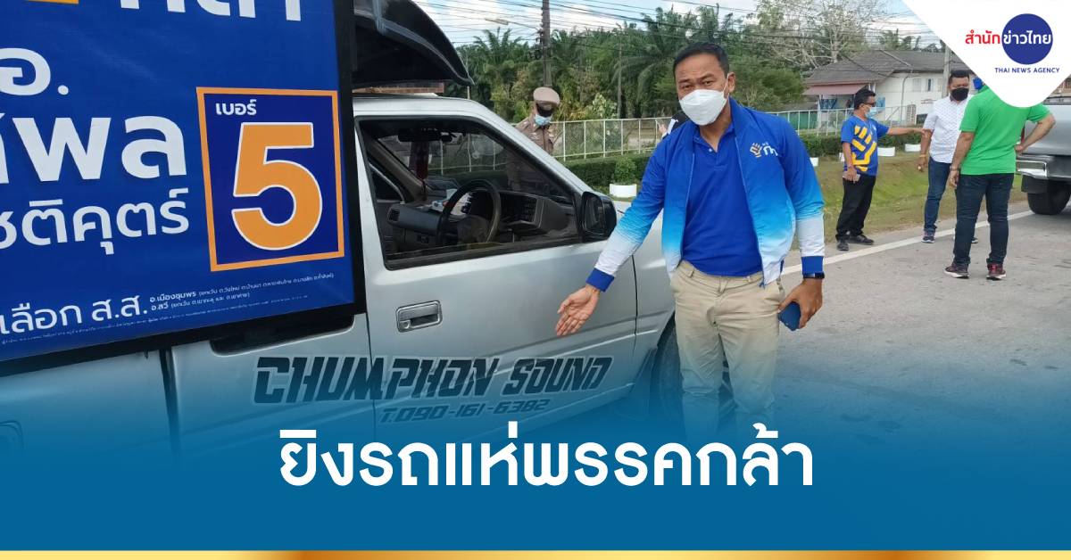 ชุมพร 7 ม.ค.-เลือกตั้งซ่อมชุมพร เดือด! มือมืดยิงรถแห่พรรคกล้า ผู้กำกับหนุ่ย เบอร์ 5 เคราะห์ดีไร้ผู้บาดเจ็บ