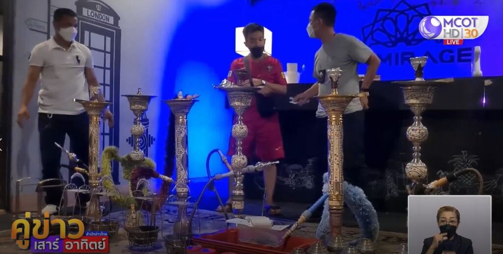 เบื้องต้นแจ้งข้อหาเจ้าของร้าน 3 ข้อ คือ 1.มีไว้เพื่อขายยาสูบหรือยาเส้นที่มิได้ปิดแสตมป์ยาสูบ ตาม พ.ร.บ.ยาสูบ พ.ศ. 2509 2.ช่วยซ่อนเร้น ช่วยจําหน่าย ช่วยพาเอาไปเสีย ซื้อ รับจํานํา หรือรับไว้โดยประการใดซึ่งของอันตนรู้ว่าเป็นของที่ยังมิได้เสียค่าภาษีหรือของต้องจํากัด หรือของต้องห้าม หรือที่เข้ามาในราชอาณาจักรโดยยังมิได้ผ่านศุลกากรโดยถูกต้องก็ดี หรือเป็นของที่นําเข้ามาในราชอาณาจักรโดยหลีกเลี่ยงอากร ตาม พ.ร.บ.ศุลการ พ.ศ. 2560 และ 3.ฝ่าฝืนคำสั่งคณะกรรมการคุ้มครองผู้บริโภค ที่ 9/2558 เรื่อง ห้ามขายหรือห้ามให้บริการสินค้า “บารากู่ บารากู่ไฟฟ้าหรือบุหรี่ไฟฟ้า หรือตัวยาบารากู่ น้ำยาสำหรับเติมบารากู่ไฟฟ้าหรือบุหรี่ไฟฟ้า”