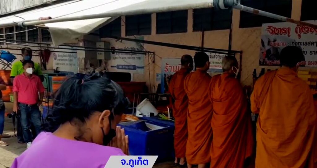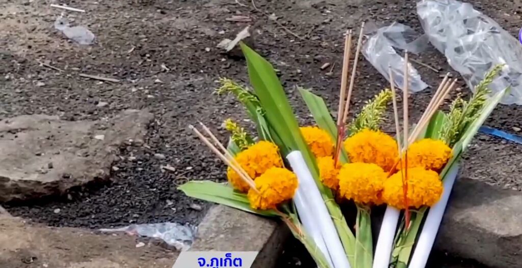 ด้านครอบครัวผู้เสียชีวิต วันนี้ได้นิมนต์พระ 4 รูป มาประกอบพิธีเชิญดวงวิญญาณ และกรวดน้ำอุทิศส่วนกุศลให้กับนายศรายุทธ และนางต้อย ที่บริเวณแผงขายของในตลาดสด โดยนางติ๋ม พี่สาวของผู้เสียชีวิตบอกว่า ที่ต้องทำแบบนี้เพราะหวังจะให้ผู้เสียชีวิตได้ไปสู่สุคติ และอยู่ในภพภูมิที่ดี รวมถึงทำเพื่อความสบายใจของผู้ที่ประกอบอาชีพอยู่ในบริเวณดังกล่าวด้วย ส่วนร่างของนายศรายุทธ และนางต้อย ตอนนี้ยังอยู่ที่โรงพยาบาล และพรุ่งนี้ญาติๆ จะไปรับศพมาประกอบพิธีทางศาสนาที่วัดแสนสุข อ.เมืองภูเก็ต ถ้าเป็นไปได้อยากบอกให้น้องทั้ง 2 คนที่เสียชีวิตว่าให้จากไปอย่างสงบ อย่ากังวล พี่ติ๋มจะดูแลหลานๆ ให้ และไม่อยากให้จองเวรจองกรรมกันคนก่อเหตุ