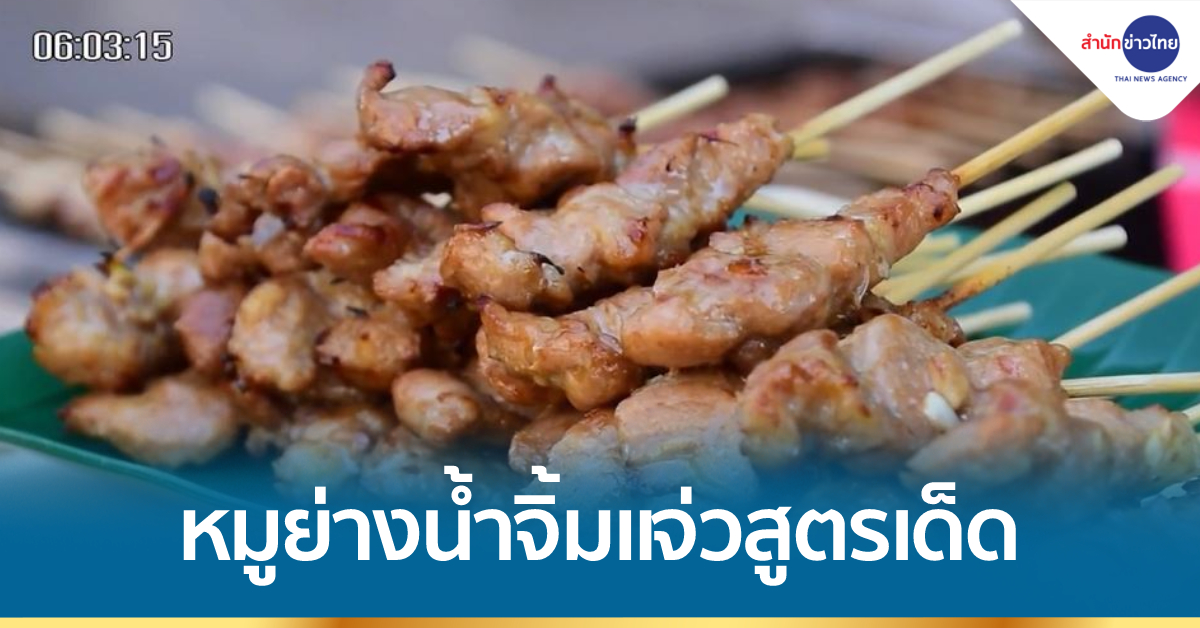 สำหรับใครที่อยากลิ้มลองรสชาติหมูย่างนุ่มๆ น้ำจิ้มแจ่ว สามารถแวะซื้ออุดหนุนได้ที่ตลาดทรัพย์สมอทอง วันเสาร์ เวลาขาย 16.30 น. และวันอาทิตย์ เวลาขาย 14.30 น. -สำนักข่าวไทย