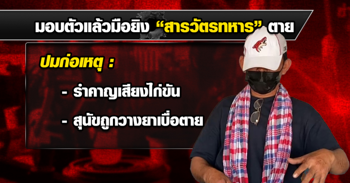 จากกรณีเพื่อนบ้านปืนดุบุกยิง จ.ส.อ.เรวัต เรืองช่วย อายุ 59 ปี อดีตสารวัตรทหารค่ายแห่งหนึ่งที่ อ.ทุ่งสง จ.นครศรีธรรมราช ด้วยอาวุธปืนขนาด 9 มม. จากด้านหลัง รวม 6 นัด กระสุนเข้าบริเวณหัวไหล่ คอ และศีรษะ เสียชีวิตคาม้านั่งหินอ่อน บริเวณคอกเลี้ยงไก่ชน หลังบ้านเลขที่ 126/2 หมู่ 6 บ้านบ่อระกำ ต.พะวง อ.เมืองสงขลา เมื่อคืนที่ผ่านมา ผู้ก่อเหตุคือ นายประมุข หรือ ดำ จิตจันทร์ อายุ 49 ปี หลังก่อเหตุได้ขับขี่รถจักรยานยนต์หลบหนี สาเหตุมาจากนายประมุข คนยิง รำคาญเสียงไก่ขันของผู้ตายที่ส่งเสียงดัง และคิดว่าผู้ตายวางยาเบื่อสุนัขของตัวเองที่ไปกัดไก่ตาย