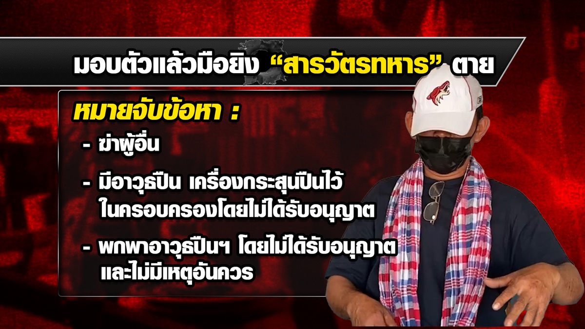 สงขลา 10 ม.ค. – คดียิงอดีตสารวัตรทหารเสียชีวิตคาบ้านที่ จ.สงขลา เพราะรำคาญเสียงไก่ขัน และคิดว่าผู้ตายวางยาเบื่อสุนัขของตัวเอง ศาลออกหมายจับผู้ก่อเหตุใน 3 ข้อหา ล่าสุดผู้ก่อเหตุได้เข้ามอบตัวแล้ว