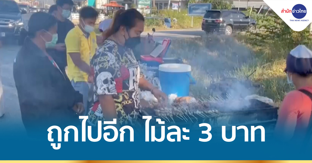 อ่างทอง 10 ม.ค.- ถูกกว่านี้มีอีกไหม? ยุคหมูแพง หมูปิ้งบ้านรอ จ.อ่างทอง ไม้ละ 3 บาท ขายดีเป็นเทน้ำเทท่า วันละ 3,000 ไม้ก็ไม่พอ ลูกค้าแห่อุดหนุนจนต้องเข้าแถว