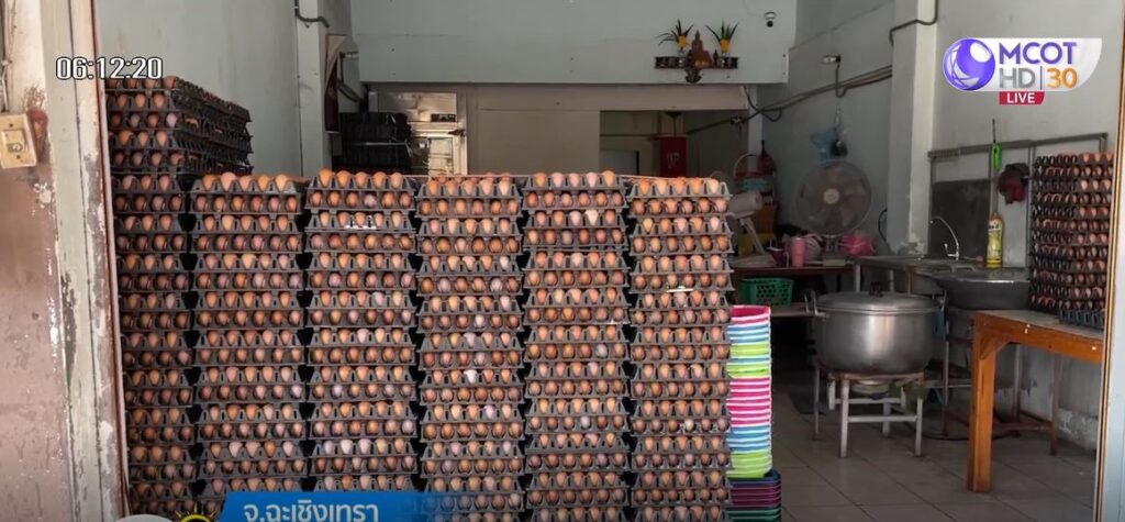 ผู้สื่อข่าวเดินทางไปสำรวจต่อยังร้านไข่ไก่ต้มแก้บน บนถนนเทพคุณากร ไปร้านเจ้ทุเรียน ไข่ต้ม พบกับ น.ส.ตุ๊กตา มณีศร อายุ 25 ปี แม่ค้าขายไข่ต้ม เปิดเผยว่า ยอมรับว่ามีผลกระทบทั้งประชาชนและแม่ค้า เวลาของขึ้นจะขึ้นทุกอย่าง บางคนมาก็หาไข่ต้มในราคาถูกๆ ตนเองไม่สามารถขายได้ ตอนนี้ทางร้านยังไม่ได้ปรับขึ้นราคา เพราะไข่ไก่ในสตอกเก่ายังมีอยู่ แต่ถ้าในวันหรือสองวันนี้ ไข่สดในสตอกหมดคงต้องปรับขึ้นราคาไข่ต้ม อีกทั้งต้องเพิ่มความระมัดระวังและพิถีพิถันในการต้มไข่ เพราะหากต้มนานไปแล้วไข่จะแตก และต้องคัดออก ไม่สามารถขายให้ลูกค้าได้ จะเป็นภาระต้นทุนของแม่ค้า.-สำนักข่าวไทย
