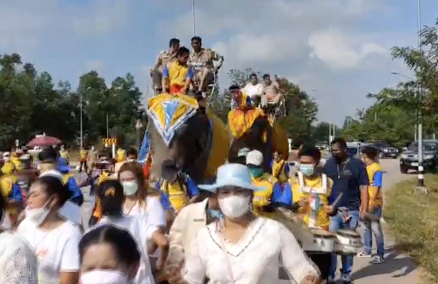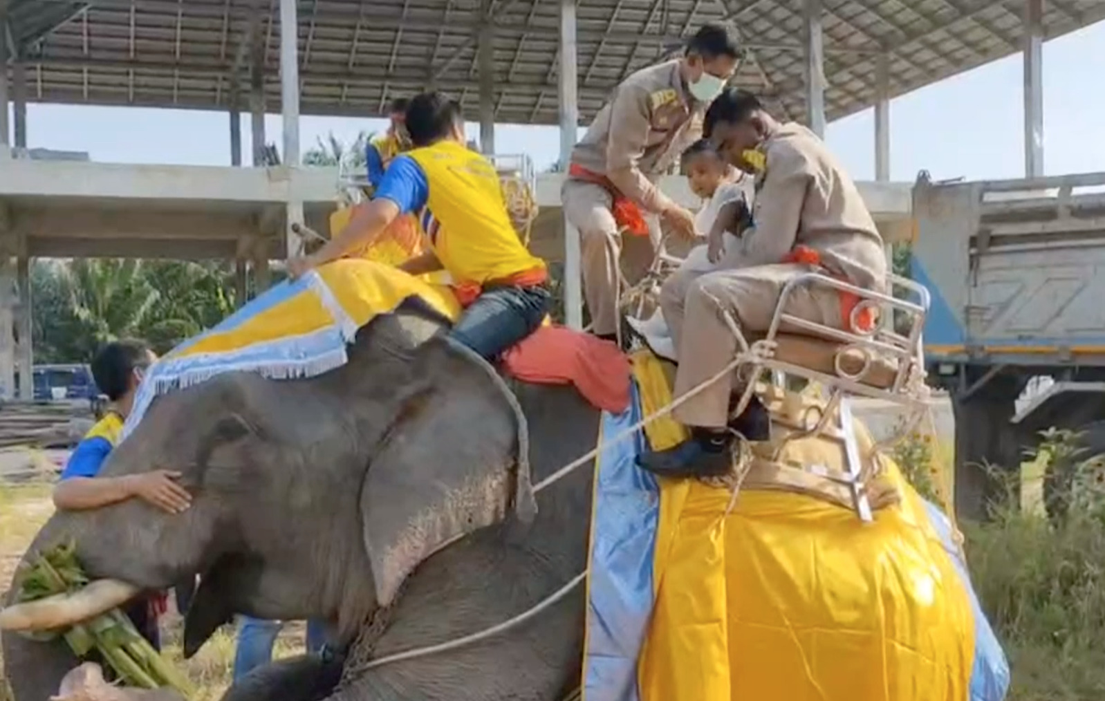 สุราษฎร์ธานี 11 ม.ค.- สุดฮือฮา! นายก อบต.ท่าเคย อ.ท่าฉาง จ.สุราษฎร์ธานี นั่งช้างเข้าสภาฯ หลังชาวบ้านบนบานสิ่งศักดิ์สิทธิ์ไว้ว่าหากนายก อบต.คนปัจจุบันได้รับเลือกตั้งจะต้องนั่งช้างเข้า อบต. ชาวบ้านร่วมยินดีรำหน้ากลองยาวคึกคัก
