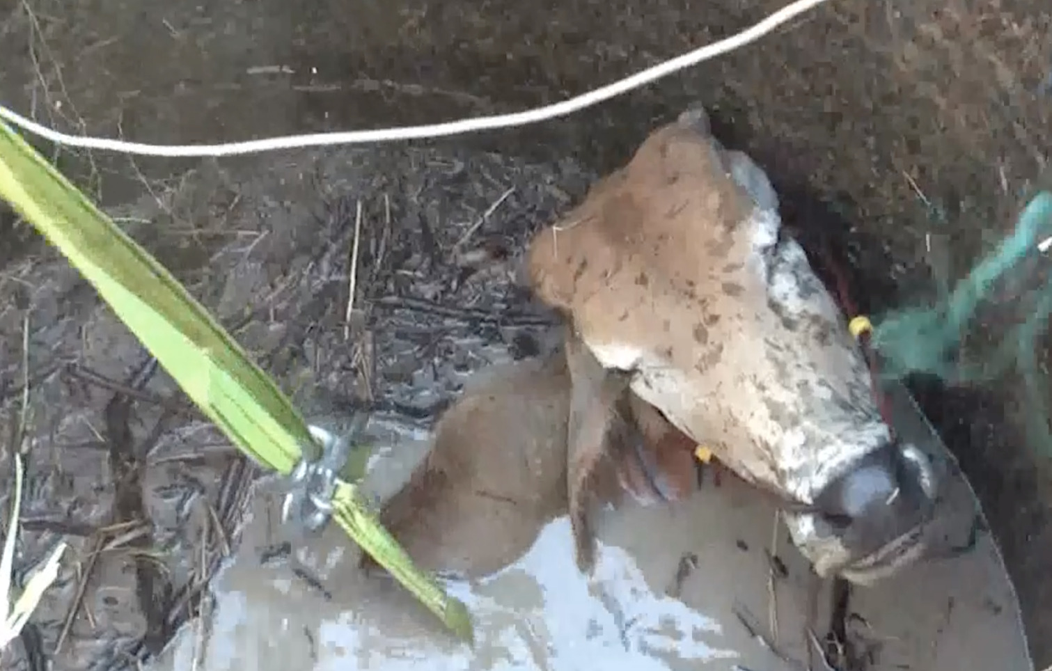 เมื่อไปถึงพบวัวเพศเมียสีน้ำตาลอายุ 2 ปี ชื่อ “สีนวล” ตกลงไปในบ่อน้ำคอนกรีตขนาดเส้นผ่าศูนย์กลาง 1 เมตร ลึกประมาณ 2.5 เมตร ลักษณะบ่อน้ำร้าง อยู่กลางแปลงนา ขอบบ่อสูงจากพื้นประมาณ10 ซม. มีน้ำอยู่บ้างแต่ไม่มาก เจ้าสีนวนพยายามกระโดดขึ้นมาหลายครั้งแต่ไม่สำเร็จ จนอ่อนแรง เจ้าหน้าที่จึงพยายามใช้เชือกคล้องเพราะลงไปคล้องเองก็ไม่ได้ เพราะบ่อแคบ อาจได้รับอันตรายจากการดิ้นไปมาของวัว พอคล้องได้ก็ยกขึ้น แต่วัวก็ดิ้นหลุดทุกครั้ง จึงเปลี่ยนวิธีการช่วยเหลือใหม่ โดยการเติมน้ำจากรถดับเพลิงลงไปในบ่อ ทำให้น้ำในบ่อสูงขึ้นช่วยพยุงให้วัวลอยตัวขึ้นมา แล้วใช้เชือกสายพาน ผ้ามัดตัว มัดขา ใช้เครนดึงขึ้นจากบ่อได้สำเร็จ