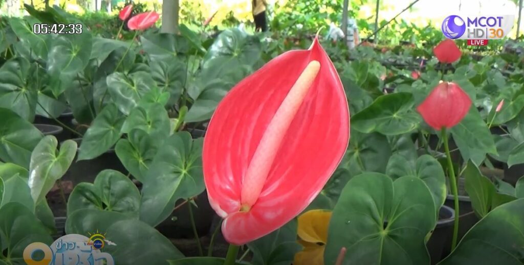 นักวิชาการส่งเสริมการเกษตรปฏิบัติการที่ศูนย์ขยายพันธุ์พืชที่ 2 จ.ตรัง นำเกษตรกรที่สนใจการปลูกเลี้ยงดอกหน้าวัว ไปชมแปลงแม่พันธุ์ ซึ่งมีทั้งสีขาว สีชมพู สีแดง สีแดงอมชมพูหรือสีโอโรส ซึ่งมีมากกว่า 3,000 ต้น ขณะนี้อยู่ระหว่างการศึกษาสายพันธุ์ที่แข็งแรง ทนทาน ดอกสวยบานอยู่ได้นาน และเหมาะกับสภาพอากาศทางภาคใต้ เพื่อพร้อมออกจำหน่ายให้กับเกษตรกรในปี 2565 โดยต้นหน้าวัวใช้เวลาปลูก 2-3 เดือน สามารถตัดดอกไปขาย ราคาตั้งแต่ดอกละ 3-5 บาท เพื่อนำไปใช้ประดับตกแต่งอาคารสถานที่ต่างๆ ที่สำคัญคือดอกหน้าวัวจะทยอยออกดอกตลอดทั้งปี
