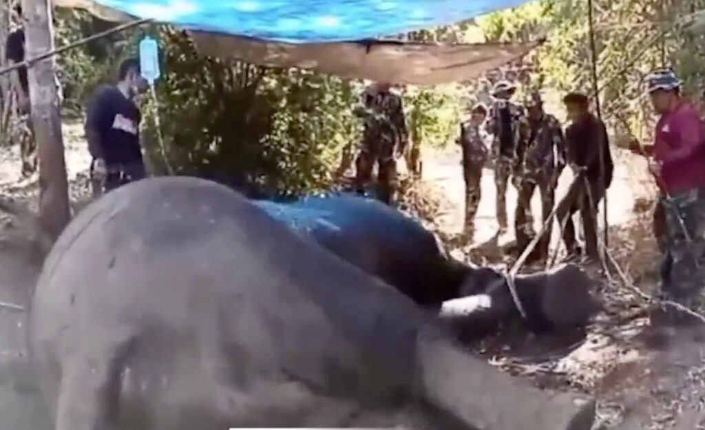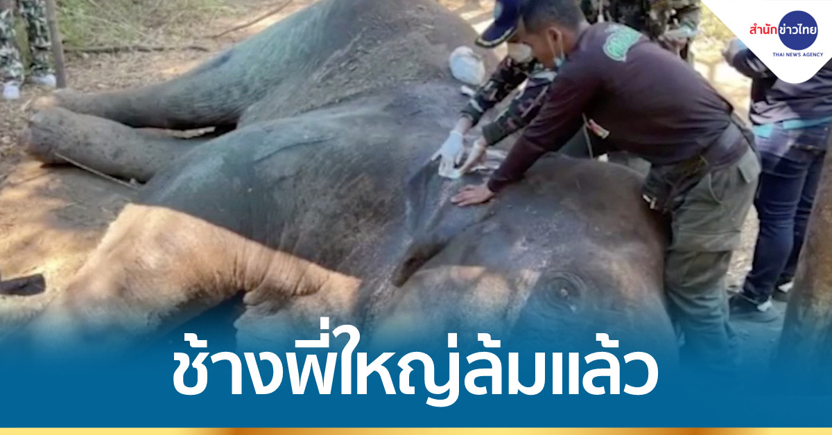 กระทั่งเมื่อช่วงเย็นวานนี้ (11 ม.ค.) การติดตามของคณะสัตวแพทย์ สำนักบริหารพื้นที่อนุรักษ์ที่ 3 (บ้านโป่ง) และเจ้าหน้าที่เขตรักษาพันธุ์สัตว์ป่าสลักพระ เข้าไปในป่า และพบช้างที่บาดเจ็บนอนอยู่บริเวณลำห้วยแห้ง ป่าพุขนาย โดยทีมสัตวแพทย์สังเกตเห็นขาของช้างที่บาดเจ็บ มีอาการอักเสบรุนแรง ทรงตัวไม่ได้ จึงรีบเข้าให้น้ำเกลือ และฉีดยาแก้อักเสบรักษาอาการปวดให้ แต่สุดยื้อใช้เวลาช่วยเหลือสักพัก ช้างป่าก็เกิดอาการกระตุก และล้ม