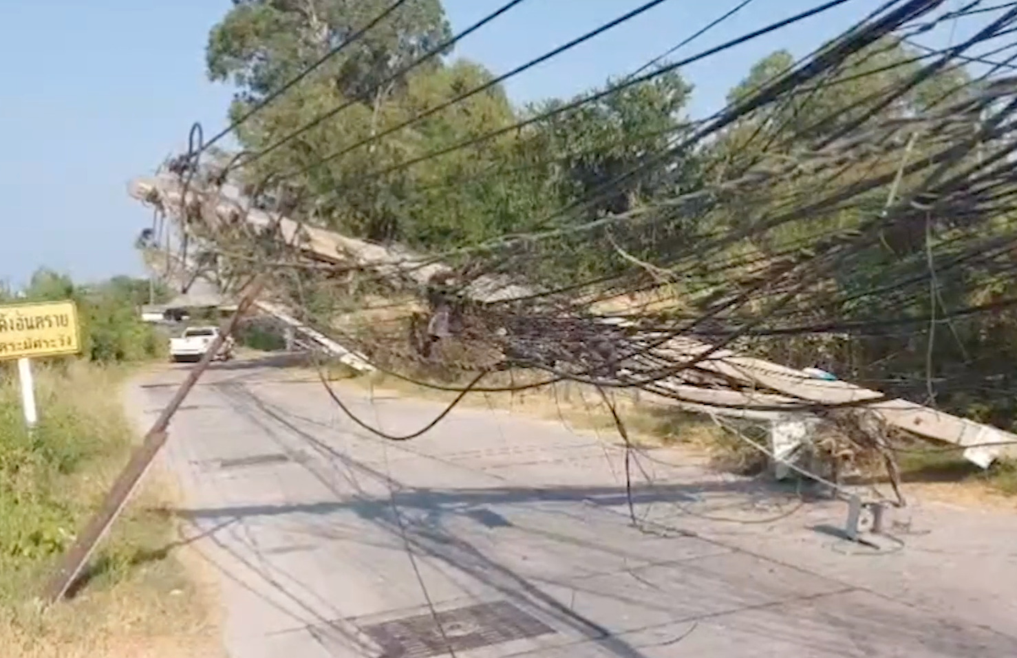 ที่จังหวัดชลบุรี เจ้าหน้าที่ตำรวจ สภ.เสม็ด รับแจ้งมีเหตุรถเกี่ยวสายไฟฟ้า ทำให้เสาไฟฟ้าล้มเป็นจำนวนมาก บนถนนภายในหน้าหมู่บ้านพร้อมพันธ์ ต.ห้วยกะปิ อ.เมือง จ.ชลบุรี ไปตรวจสอบพร้อมเจ้าหน้าที่การไฟฟ้าชลบุรี พบรถบรรทุก 10 ล้อ ยี่ห้อ Hino หัวสีขาว ทะเบียน 84-7780 ชลบุรี บรรทุกรถเกรดดินมาด้วย และรถเกรดดินเกี่ยวเสาไฟฟ้าและสายสื่อสารทำให้เสาไฟฟ้าล้มตลอดแนวเป็นเสาไฟฟ้าแรงสูง 3 ต้น และเสาไฟฟ้าแรงต่ำ 8 ต้นรวม 11 ต้น ซึ่งเจ้าหน้าที่การไฟฟ้าต้องทำการตัดไฟชั่วคราวเพื่อป้องกันเหตุไฟช็อต และได้นำเจ้าหน้าที่มารื้อสายไฟ และซ่อมติดตั้งเสาไฟใหม่เพื่อใช้ได้ดังเดิม นอกจากนี้ยังมีบ้านถูกไฟฟ้าล้มทับบ้านได้รับความเสียหาย บอกว่าอยากให้ผู้สัญจรพิจารณาหน่อยว่าความสูงของรถผ่านได้ไหม และอยากให้ช่วยดูแลค่าซ่อมแซมบ้าน