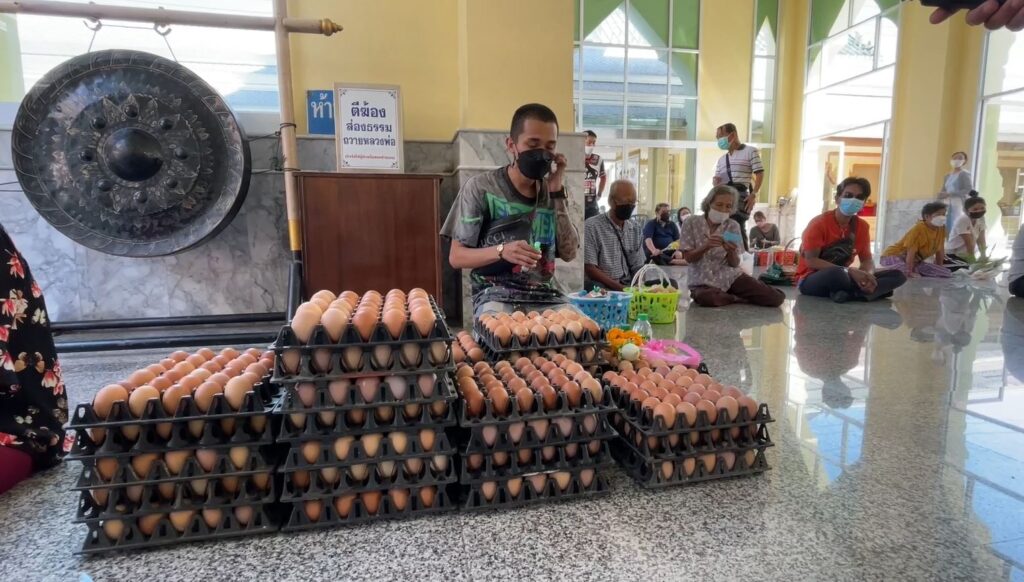 ขณะที่นายศักดา โสดาวิชิต อายุ 29 ปี ชาวจังหวัดปราจีนบุรี พ่อค้าขายส่งเสื้อผ้าออนไลน์ เปิดเผยว่า ตนเองมักจะเดินทางมาแก้บนที่หลวงพ่อโสธรอยู่เป็นประจำ หลังๆ ตนเองจะบนเป็นไข่ดิบ จำนวน 999 ฟอง ต่อครั้ง ล่าสุดร้านประจำที่ตนเองซื้อได้ปรับขาย ในราคากระบะละ 85 บาท จาก 63 บาท ซึ่งก็ถือว่ามีการปรับราคาขึ้นสูงพอสมควร