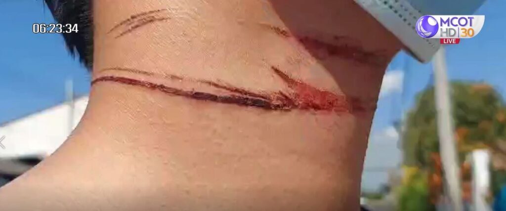 ผู้ใช้เฟซบุ๊กรายหนึ่ง โพสต์รูปภาพร่องรอยบาดแผลบริเวณลำคอที่ถูกสายสัญญาณของบริษัทแห่งหนึ่ง บาดจนเป็นแผลลึก พร้อมระบุข้อความว่า “ขออนุญาตครับผม ในกรณีนี้หน่วยงานไหนรับผิดชอบได้บ้างครับ กลัวไปแจ้งความแล้วตำรวจจะให้ลงบันทึกประจำวันไว้เฉยๆ ครับ พร้อมบอกว่า ถ้าผมขับมาเร็ว คอคงขาดแล้ว”