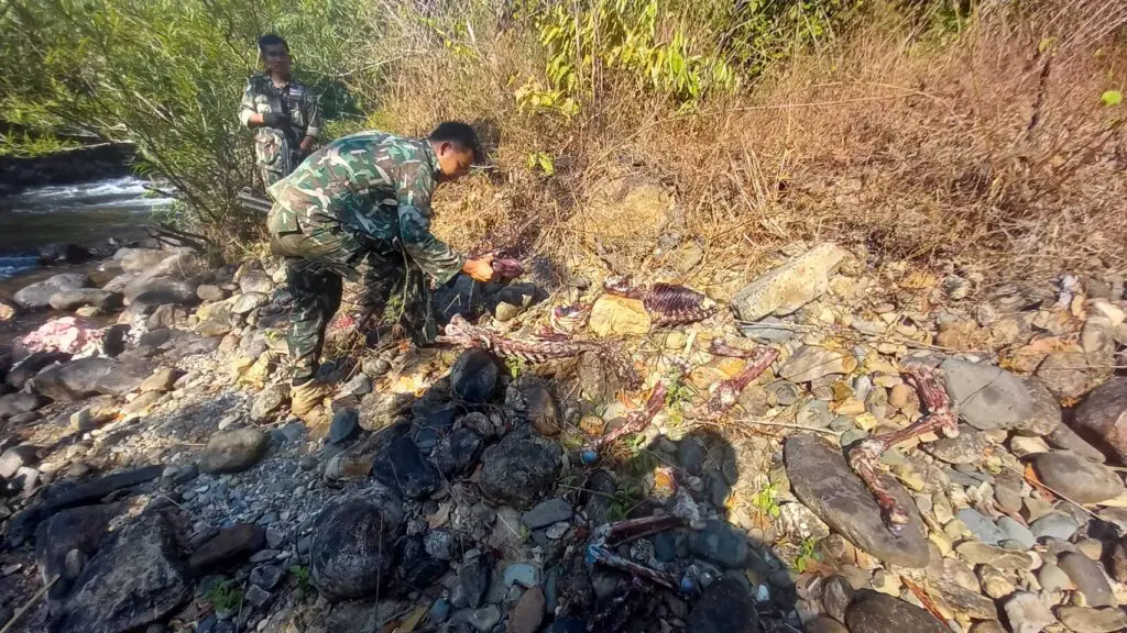 โดยพบแคร่ร้านย่างเนื้อสัตว์และซากเสือโคร่ง 2 ซาก สันนิฐานเป็นเสือโคร่งที่ออกหากินระหว่างชายแดนไทย-พม่า พร้อมอาวุธปืน 4 กระบอก และอุปกรณ์การกระทำผิดอื่นรวม 29 รายการ ล่าสุดมีรายงานว่าพรานทั้ง 5 คน ซึ่งเป็นชาวบ้านในพื้นที่ติดต่อขอเข้ามอบตัวแล้ว.-สำนักข่าวไทย
