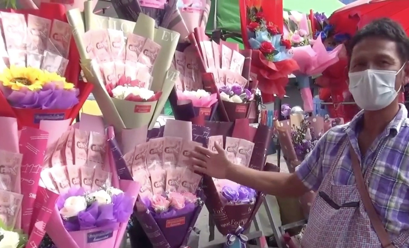 พ่อค้าขายช่อดอกไม้ บอกว่า ตระเวนขายทั่วประเทศ รูปแบบเปลี่ยนไป ทำช่อดอกเงินมากขึ้น เพราะเก็บไว้ได้ ถ้าขายไม่หมด รวมทั้งปีนี้วัสดุทุกอย่างปรับราคาขึ้นหมด ทั้งกระดาษ แผ่นพลาสติก โบว์ หรืออุปกรณ์ต่างๆ ราคาสูงขึ้นแต่เงินยังคงที่.-สำนักข่าวไทย