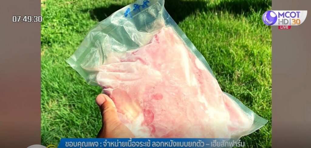 ปกติทางฟาร์มจะส่งออกเนื้อจระเข้ไปยังประเทศจีน ไต้หวัน และฮ่องกง แต่เนื่องด้วยสถานการณ์โควิด-19 จึงไม่สามารถส่งออกได้ ทำให้ทางฟาร์มนำเนื้อจระเข้มาจำหน่ายให้คนไทยในราคาที่จับต้องได้