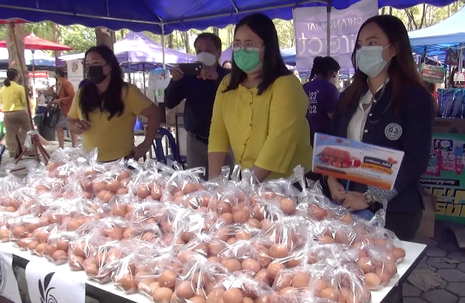 เชียงใหม่ 17 ม.ค.- รองผู้ว่าฯ เชียงใหม่ ขายไข่ไก่ราคาถูก บริเวณตลาดนัดประชารัฐ ภายในศูนย์ราชการจังหวัดเชียงใหม่ และในช่วงนาทีทอง 11.00 น. จะขายไข่ไก่ราคาถูกฟองละ 1 บาท จำกัดคนละ 10 ฟอง และภายในงานยังมีเนื้อไก่ราคาถูก รวมถึงสินค้าอุปโภคบริโภค ขายให้ชาวบ้านในราคาถูกกว่าท้องตลาด