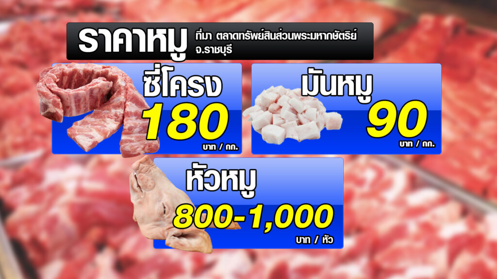 นายเกรียงศักดิ์ ประทัษการ พ่อค้าเขียงหมูในตลาดทรัพย์สินส่วนพระมหากษัตริย์ เขตเทศบาลเมือง อ.เมือง จ.ราชบุรี เปิดเผยว่า ช่วงนี้นำหมูมาขายน้อยลงจากเมื่อก่อน 8-10 ตัว ตอนนี้เหลือประมาณ 5-6 ตัว เพราะต้นทุนแพง ลูกค้าส่วนใหญ่เป็นร้านอาหารต่างๆ ช่วงนี้ลูกค้าลดลงเพราะร้านอาหารปิดตัวลงด้วยสถานการณ์โควิด-19 สำหรับที่ร้านใช้หมูคุณภาพดี หมูที่เป็นโรคจะไม่เอามาขายเพื่อความปลอดภัยของลูกค้า ทุกวันนี้หมูมีคุณภาพจะมีราคาแพง ช่วงนี้หมูสามชั้นจะขายดีมากที่สุด แพงกว่าหมูเนื้อแดง ซึ่งวันนี้เป็นวันพระขายอยู่กิโลกรัมละ 250 บาท คิดว่าตรุษจีนนี้น่าจะขึ้นราคาอีก 10-20 บาท ณ วันนี้ฟาร์มยังขายวันพระที่ราคาเท่านี้ แต่ไม่รู้พรุ่งนี้จะปรับขึ้นราคาอีกเท่าไหร่ ถ้าปรับเพิ่มอีก 2-3 บาท ทางเขียงเราก็จะต้องปรับเพิ่มตามอีก หากขายราคาเดิมก็ขาดทุน อยากให้รัฐช่วยมีทางเดียว คือ ต้องสั่งหมูนำเข้าจากต่างประเทศ แต่ต้องจำกัดจำนวนช่วงที่กำลังวิกฤตินี้แค่ไม่กี่เดือน เพื่อช่วยเหลือกัน ประชาชนจะได้กินของถูกช่วงนี้ไปก่อน