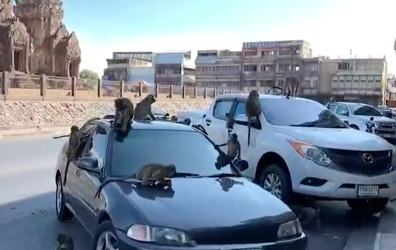 ลพบุรี 18 ม.ค.- ที่จังหวัดลพบุรี มีให้บริการรื้อรถฟรี แบบไม่เสียค่าใช้จ่าย นั่นคือฝูงลิง กำลังช่วยกันรุมกัดแทะ แกะ กัดขอบยางทุกชนิดที่อยู่นอกตัวรถ รวมถึงเสาอากาศวิทยุ และที่ปัดน้ำฝน คนพื้นที่แนะนำหากพบลิงขึ้นไปบนรถ ควรแจ้งเจ้าหน้าที่ศาลพระกาฬ ให้มาช่วยไล่ลิงออกไป