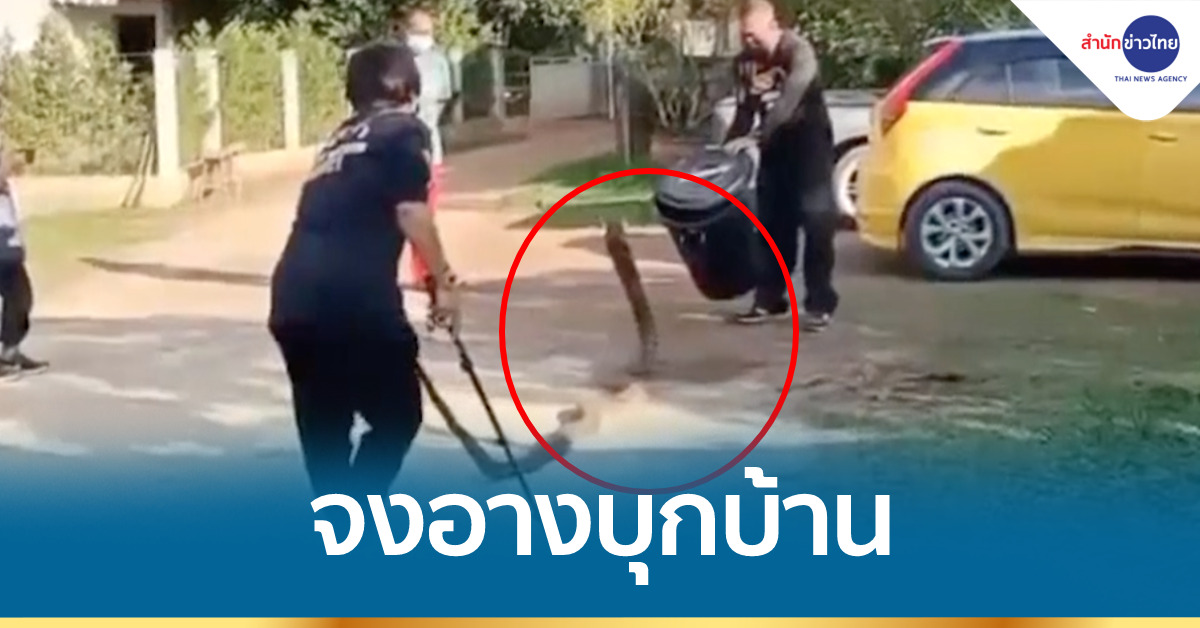 เจ้าของบ้าน เล่าว่านั่งเย็บผ้าอยู่หน้าบ้านได้ยินเสียงดังซอกแซก จึงก้มลงไปใต้ที่นั่ง เห็นงูจงอางสีดำขนาดใหญ่ ร้องกรี๊ดแทบฉี่ราด สำหรับงูจงอางตัวนี้ เจ้าหน้าที่ตรวจสอบเบื้องต้นพบว่าไม่มีท่าทีดุร้าย จึงวางแผนจะนำไปเป็นงูฝึกสอนให้กับน้องๆ กู้ภัยได้เรียนรู้วิธีการจับงูที่ถูกต้อง ลดการบาดเจ็บหรือถูกทำร้ายจนถึงแก่ชีวิตได้