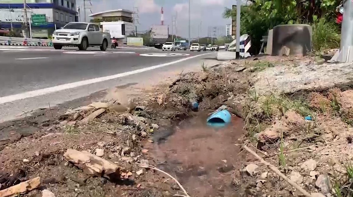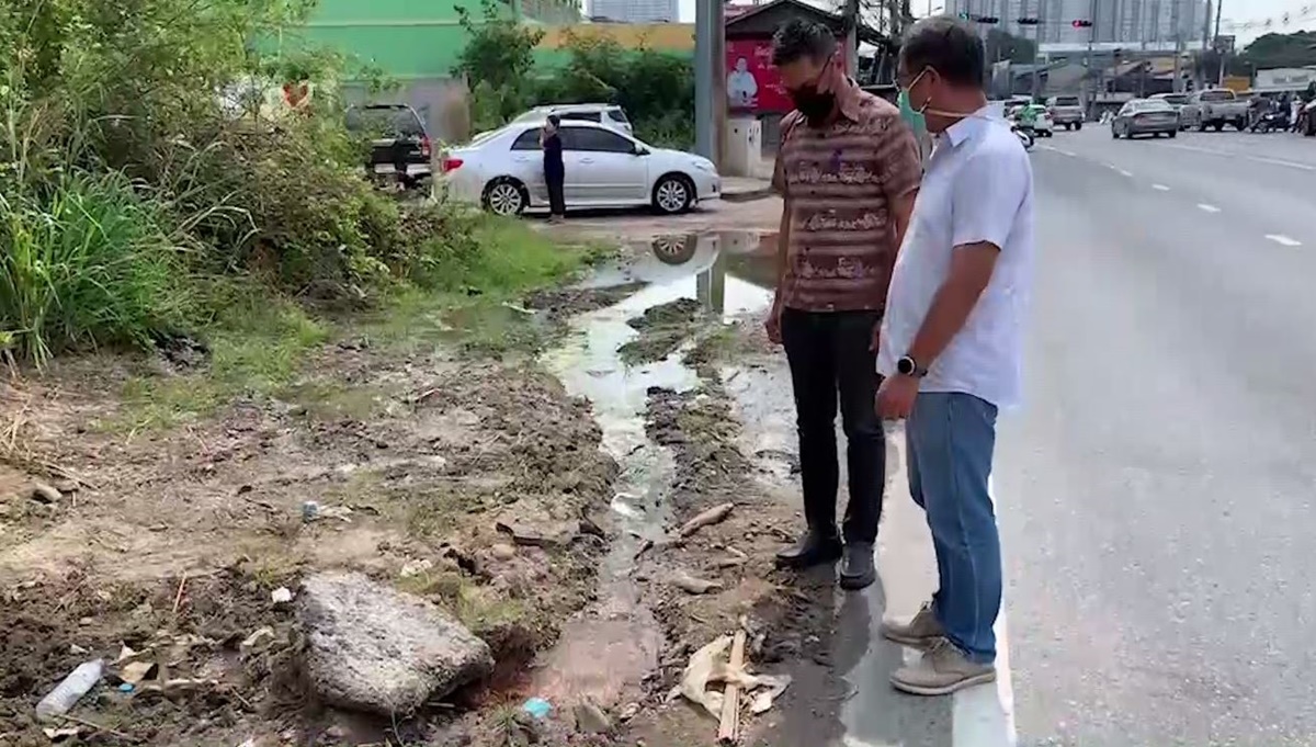 ป้ามุ้ย เล่าว่า ก่อนปีใหม่ได้มีการขุดเจาะริมทาง ถ.สุขุมวิท จากนั้นก็มีการกลบคืนสภาพผิวถนน แต่อยู่มากลับมีน้ำผุดออกมาจากใต้ดิน ตนเองได้แจ้งหน่วยงานประปาพัทยา หลังจากนั้นทางประปาฯ ได้ลงมาดูแลแก้ไขเบื้องต้น โดยนำท่อพีวีซีมาผันน้ำที่ไหลมาจากใต้ดิน ให้ไหลไปลงตรงคลองสาธารณะบ้านนาเกลือ ซึ่งจะเห็นได้ว่าปริมาณน้ำประปาที่ผุดออกมาไหลเป็นน้ำตกเลย