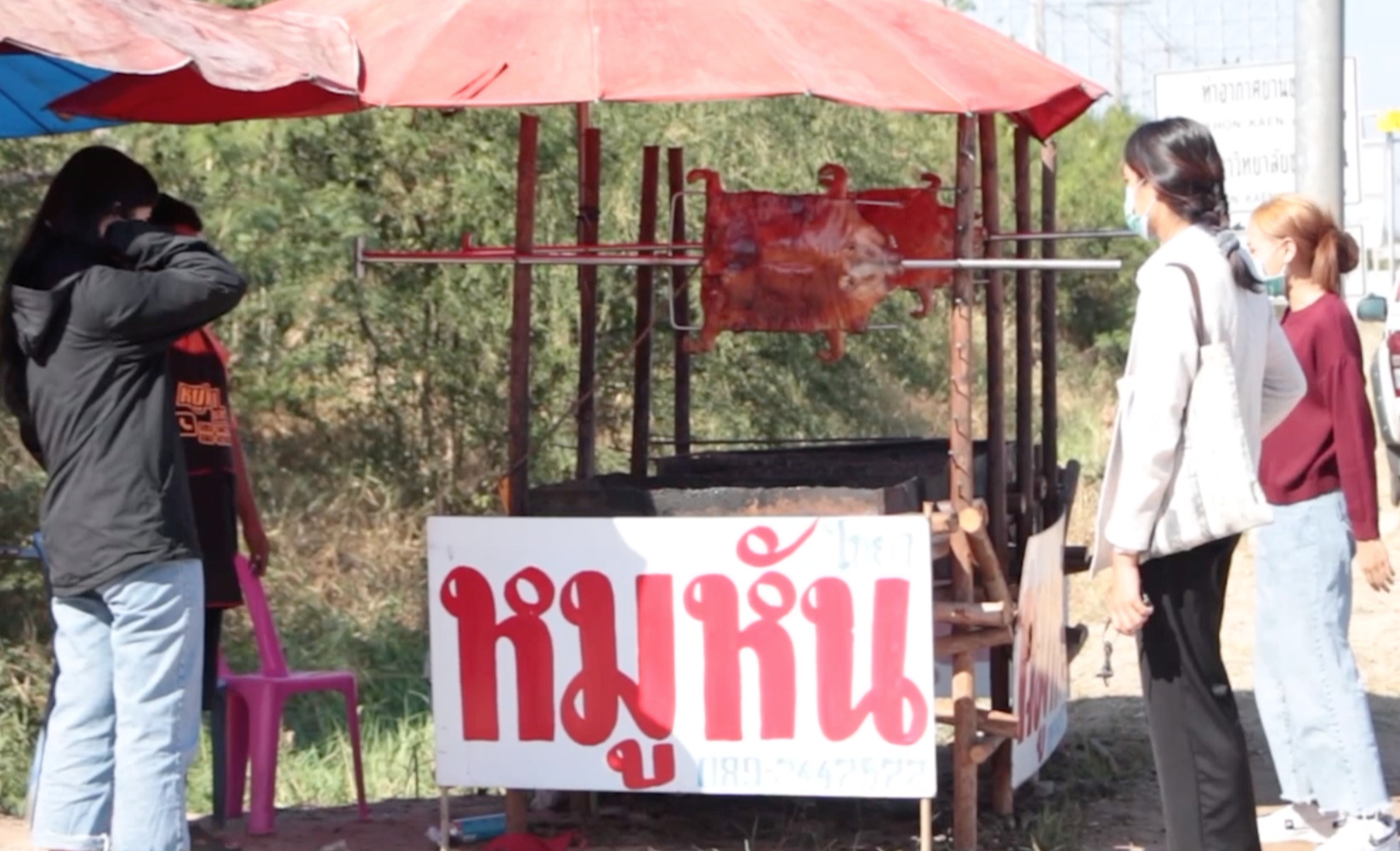 ที่ จ.ขอนแก่น ร้านหมูหันริมทางชื่อ “หมูหัน ไชยา” เจ้าของร้านระบุ ราคาหมูที่สูงขึ้นขณะนี้ กระทบกับร้านอาหารที่ใช้เนื้อหมูเป็นวัตถุดิบ บรรยากาศค้าขายเงียบเหงา นายชาตรี เขียวหวาน พ่อค้าขายหมูหันไชยา บอกว่านำมาหันขายวันละประมาณ 10 ตัว ขายหมดทุกวัน แต่ก็ต้องใช้เวลานานขึ้นกว่าเดิม ส่วนหนึ่งอาจเป็นเพราะลูกค้าคิดว่า ราคาขายจะสูงขึ้นกว่าเดิม จึงไม่จอดซื้อ แต่ร้านยังขายในราคาเดิมคือ กิโลกรัมละ 200 บาท หากขายเป็นตัวก็จะเริ่มต้นตั้งแต่ 800 – 5,000 บาท แล้วแต่จำนวนที่ลูกค้าต้องการ สาเหตุที่ต้องขายในราคาเดิมเพราะต้องการรักษาลูกค้าไว้
