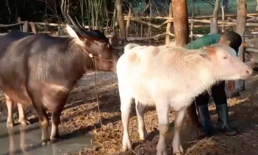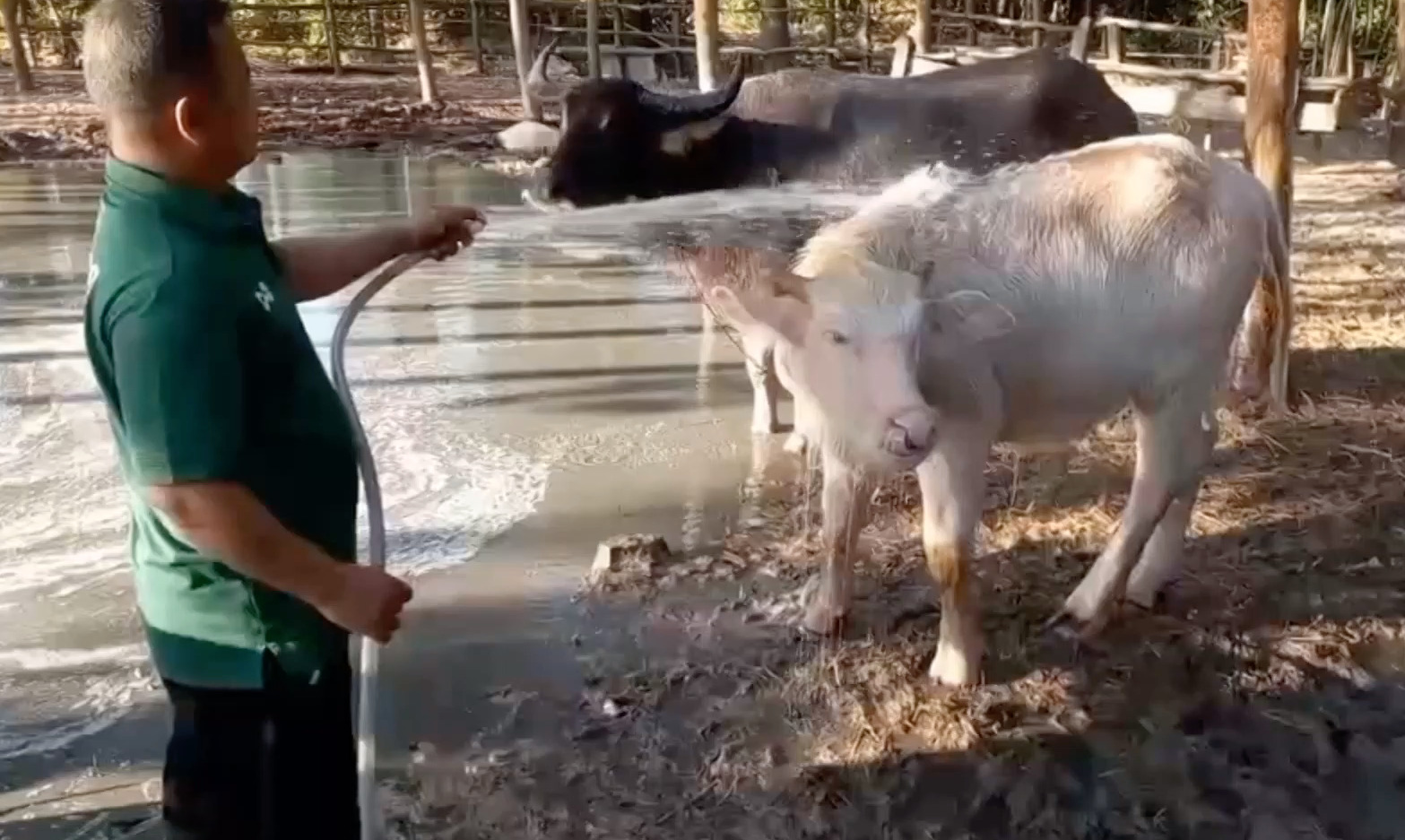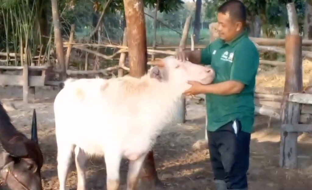 นายศักดิ์ชัย ศรีใสคำ ดีใจที่ได้ควายเผือกมาอยู่ด้วย เพราะไม่นึกไม่ฝันมาก่อน นำแม่พันธุ์ไปผสมกับพ่อพันธุ์ ทุกตัวสีดำแต่กลับได้ลูกความเผือกมาแทน เจ้าไอติม เป็นควายที่น่ารักขี้อ้อน ชอบหยอกล้อกับเจ้าของอยู่เป็นประจำ ที่สำคัญเจ้าไอติมเป็นควายชอบเล่นน้ำ ชอบอาบน้ำอยู่ตลอดทั้งวัน ไม่ว่าจะหนาวหรืออากาศร้อน.-สำนักข่าวไทย