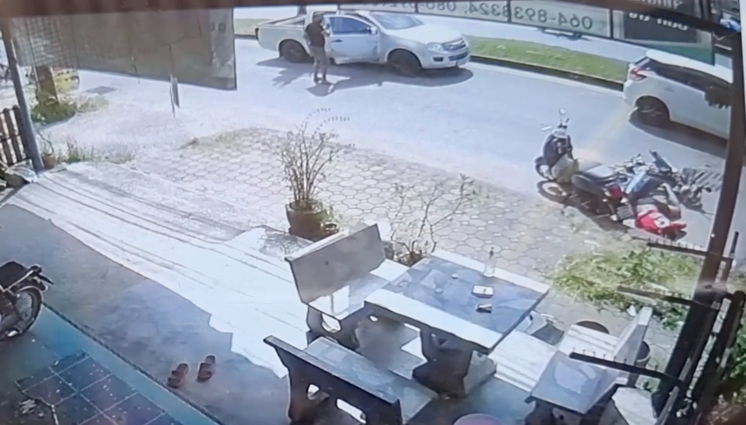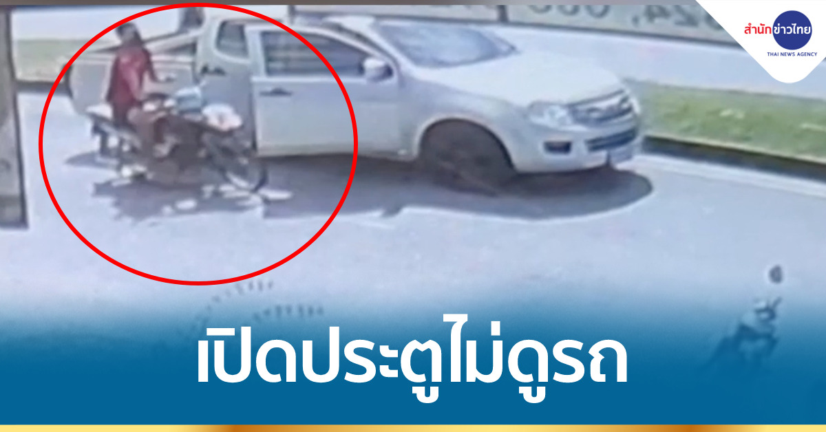 ภาพจากกล้องวงจรปิด ขณะเกิดอุบัติเหตุรถจักรยานยนต์ขี่พุ่งชนประตูรถกระบะ ที่ขับมาจอดริมถนนและคนขับเปิดประตูออกมาโดยไม่ทันมองว่ามีรถตามหลังมาหรือไม่ ทำให้รถจักรยานยนต์เสียหลักล้ม ทั้งคนขับและรถไถลไปกระแทกกับรถจักรยานยนต์อีกคันที่จอดอยู่อีกฝั่งของถนน ทำให้คนขี่จักรยานยนต์สลบคาที่ เหตุเกิดบนถนนเพชรเกษม ขตเทศบาลนครหาดใหญ่ จ.สงขลา แต่โชคยังดี ขณะเกิดเหตุมีเจ้าหน้าที่ของหน่วยกู้ภัยมูลนิธิของหาดใหญ่ผ่านมาพบพอดี จึงรีบจอดรถลงมาช่วยปฐมพยาบาล ก่อนที่หน่วยกู้ชีพจะเดินทางมาถึง และรีบนำตัวส่งโรงพยาบาลหาดใหญ่ ทราบชื่อคนเจ็บคือ นายโกศล มีแผลฉีดขาดที่ศีรษะ 5-6 เซนติเมตร