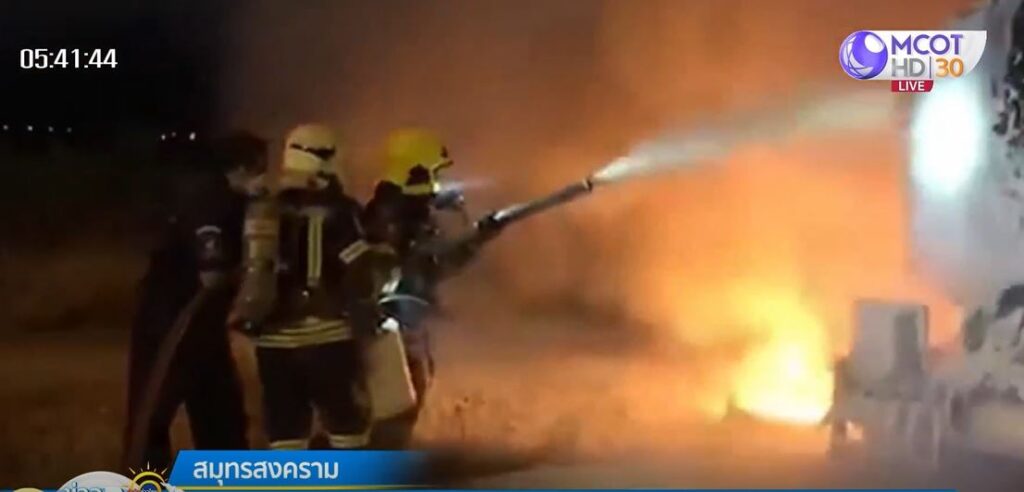 สมุทรสงคราม 21 ม.ค. – ไฟไหม้รถบรรทุกน้ำมันปาล์ม 30,000 ลิตร คนขับพยายามใช้ถังดับเพลิงดับแต่ไม่เป็นผล จึงรีบแยกหัวลากออกจากลูกพ่วง รอดตายหวุดหวิด