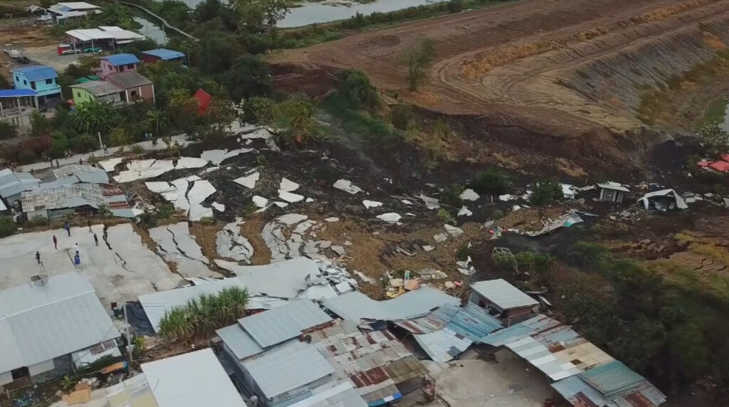 ผู้สื่อข่าวลงพื้นที่จุดเกิดเหตุดินสไลด์ บริเวณ ซ.ศรีสัมพันธ์ ต.บางปลา อ.บางพลี จ.สมุทรปราการ พบบ้านเรือนเสียหายนับสิบหลัง บางหลังไหลลงคลอง แต่ไม่มีผู้ได้รับบาดเจ็บ ขณะที่พื้นปูนแยกแตกเป็นวงกว้าง บางจุดลึกกว่า 10 เมตร เจ้าหน้าที่ต้องกั้นพื้นที่ไม่ให้ผู้ไม่มีส่วนเกี่ยวข้องเข้าไป เนื่องจากยังเป็นจุดเสี่ยง