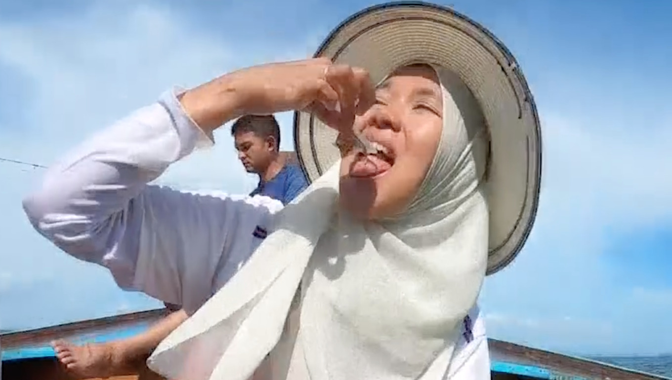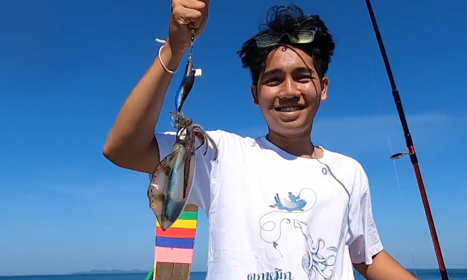 ฟินขนาดไหน ดูหน้านักท่องเที่ยวแต่ละคนที่โดยสารเรือหางยาวออกไปตกหมึกสดหลังเกาะลิบง อ.กันตัง จ.ตรัง กันอย่างคึกคัก เนื่องจากช่วงนี้เป็นช่วงที่น้ำทะเลสวยใสราวกระจก มองจากมุมสูงเห็นท้องน้ำและปะการังน้ำตื้นได้อย่างชัดเจน และช่วงนี้เป็นฤดูกาลของหมึกที่ออกหากินทั้งกลางวันและกลางคืน มีทั้งหมึกกระดอง หมึกหอม หมึกกล้วยและหมึกสาย
