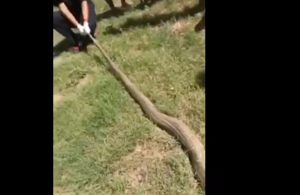 เมื่อไปถึงที่เกิดเหตุซึ่งเป็นบ้านชั้นเดียว บริเวณสวนหลังบ้านจุดที่เจ้าของบ้านแจ้ง มีต้นกล้วยปลูกไว้จำนวนมาก เจ้าหน้าที่พยายามค้นหา ก่อนจะพบส่วนหางของงู ซึ่งพยายามเลื้อยหนีเข้าไปในป่ากล้วย เจ้าหน้าที่จึงใช้อุปกรณ์จับตัวด้วยความลำบาก เนื่องจากเป็นงูจงอางขนาดใหญ่ และพยายามขัดขืนไม่ให้จับตัว โดยใช้เวลาประมาณ 10 นาที จึงจะสามารถจับตัวไว้ได้ จากการวัดขนาดพบว่ายาวกว่า 4 เมตร น้ำหนักประมาณ 20 กิโลกรัม ก่อนจะนำไปปล่อยคืนสู่ธรรมชาติ บริเวณเทือกเขาบรรทัด อ.นาโยง จ.ตรัง
