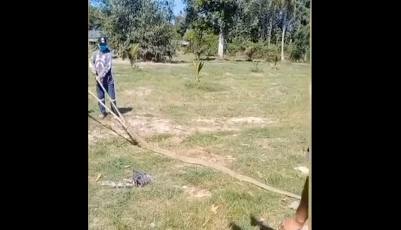 โดยนางสุณี เล่าว่า ขณะที่ลูกชายชื่อ ด.ช.ณัฐวุฒิ ทวนดำ อายุ 14 ปี กำลังนั่งกินข้าวอยู่ที่ประตูหลังบ้านก็พบงูจงอางกำลังชูคออยู่ที่ต้นกล้วยและพยายามจะเลื้อยจะเข้าในบ้าน ลูกชายจึงรีบปิดประตูบ้านหนีและวิ่งมาบอกตน ตนจึงรีบออกมาดูพบเป็นงูจงอางขนาดใหญ่มาก เห็นแล้วรู้สึกกลัวขนลุกขึ้นมาทันที จึงรีบปิดประตูหนี ตะโกนบอกคนในบ้าน และเพื่อนบ้านต่างพากันปิดประตูบ้านกัน กลัวว่างูจะเข้ามาในบ้าน ตนตกใจมากหากลูกชายไม่เห็นก่อน เชื่อว่ามันน่าจะเลื้อยเข้ามาในบ้าน เพื่อหาแหล่งน้ำและอาหาร.-สำนักข่าวไทย