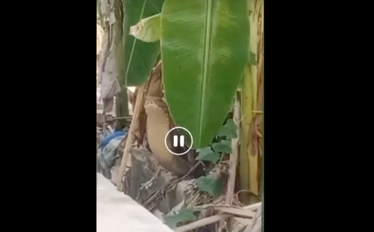 ตรัง 21 ม.ค.- เด็กชายวัย 14 ปี นั่งกินข้าวอยู่หลังบ้านต้องสะดุ้งโหยง หลังพญางูจงอางยาวกว่า 4 เมตร เลื้อยชูคอจ้องเขม็งอยู่ข้างต้นกล้วยและจะเลื้อยเข้าในบ้าน ตั้งสติได้รีบปิดประตูและแจ้งกู้ภัยฯ