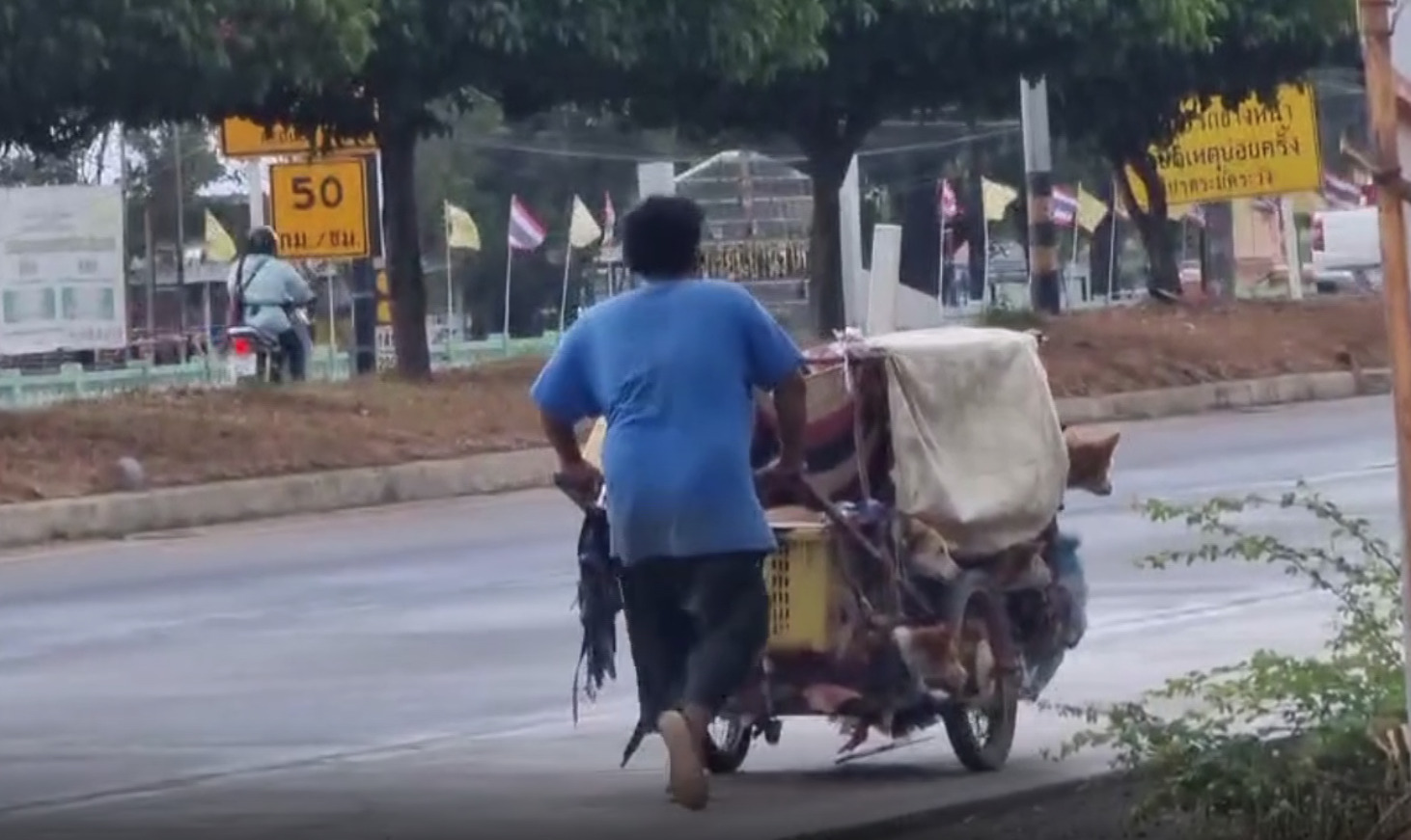 เพชรบูรณ์ 22 ม.ค.- ชายเดินจูงหมาไปสนามหลวง ที่เคยตกเป็นข่าวทารุณกรรมสัตว์เมื่อปี 64 ล่าสุดมีคนพบเดินตากฝน เข็นรถไสพร้อมหมาอีก 8 ตัว ในสภาพซูบผอม ที่ อ.บึงสามพัน จ.เพชรบูรณ์ ไม่ยอมพูดจา วินมอเตอร์ไซค์แถวนั้นบอกว่า เห็นเข็นรถไสวนเวียนไปมาอยู่ 2 วันแล้ว สงสารทั้งคนสงสารทั้งหมา ถ้าเป็นไปได้อยากให้องค์กรที่เกี่ยวกับสุนัขเข้ามาตรวจสอบหรือช่วยเหลือ