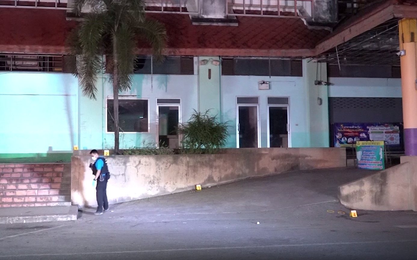 บริเวณด้านหน้าสถานีฯ พบร่องรอยความเสียหายจากแรงระเบิด ประกอบด้วยจุดที่ 1 บริเวณต้นหมาก ทางขึ้นฝั่งด้านซ้ายของสถานีฯ พบหลุมขนาดเล็ก แต่ไม่มีสะเก็ดระเบิด ใกล้กันพบเศษกระป๋องสเปรย์
