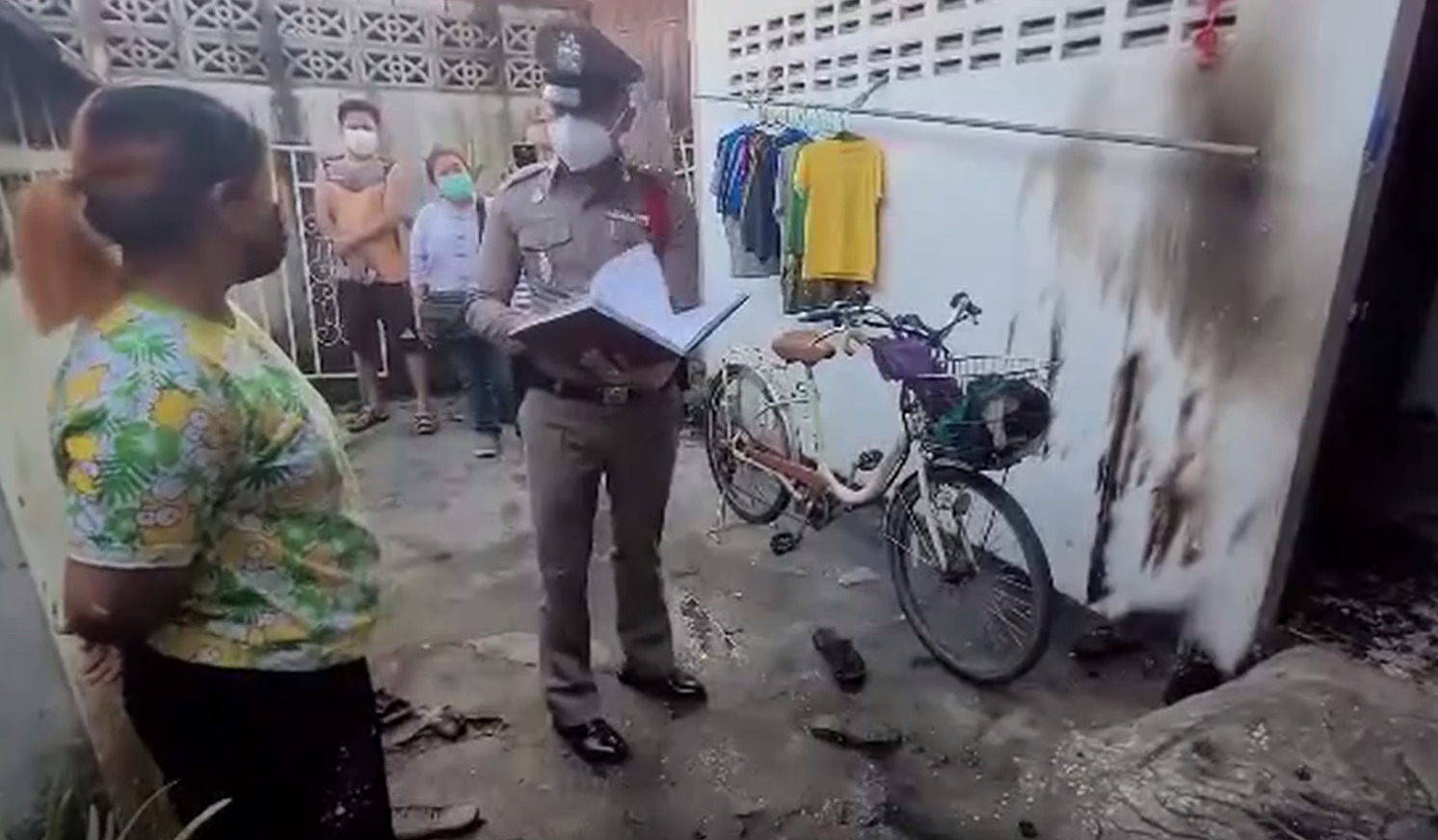 นางสาวอะสี่ ผู้เสียหาย เล่านาทีระทึกเบื้องต้นว่า ก่อนเกิดเหตุตนกำลังนั่งพักผ่อนอยู่หน้าบ้านเช่า ระหว่างนั้นนายอาหน่าย แฟนเก่า ซึ่งเลิกรากันไปนานแล้ว เข้ามาพูดคุยเจรจาขอคืนดี แต่ตนไม่คืนดีและขอยุติความสัมพันธ์ จนมีปากเสียงกัน จากนั้นนายอะหน่าย เห็นภาพบาดตาบาดใจ เป็นภาพแฟนหนุ่มคนใหม่ที่ตนติดภาพไว้จึงโกรธ รีบคว้ากระป๋องทินเนอร์ที่พกมาด้วย มาราดทั่วทั้งตัวของตน พร้อมราดไปทั่วห้องพัก และก็จุดไฟเผาห้องพักจนเกิดไฟไหม้ไปทั่วห้อง ก่อนวิ่งมาจะจุดไฟเผาตน แต่ตนตั้งสติรีบวิ่งหนีตายออกมาได้แบบเฉียดฉิว