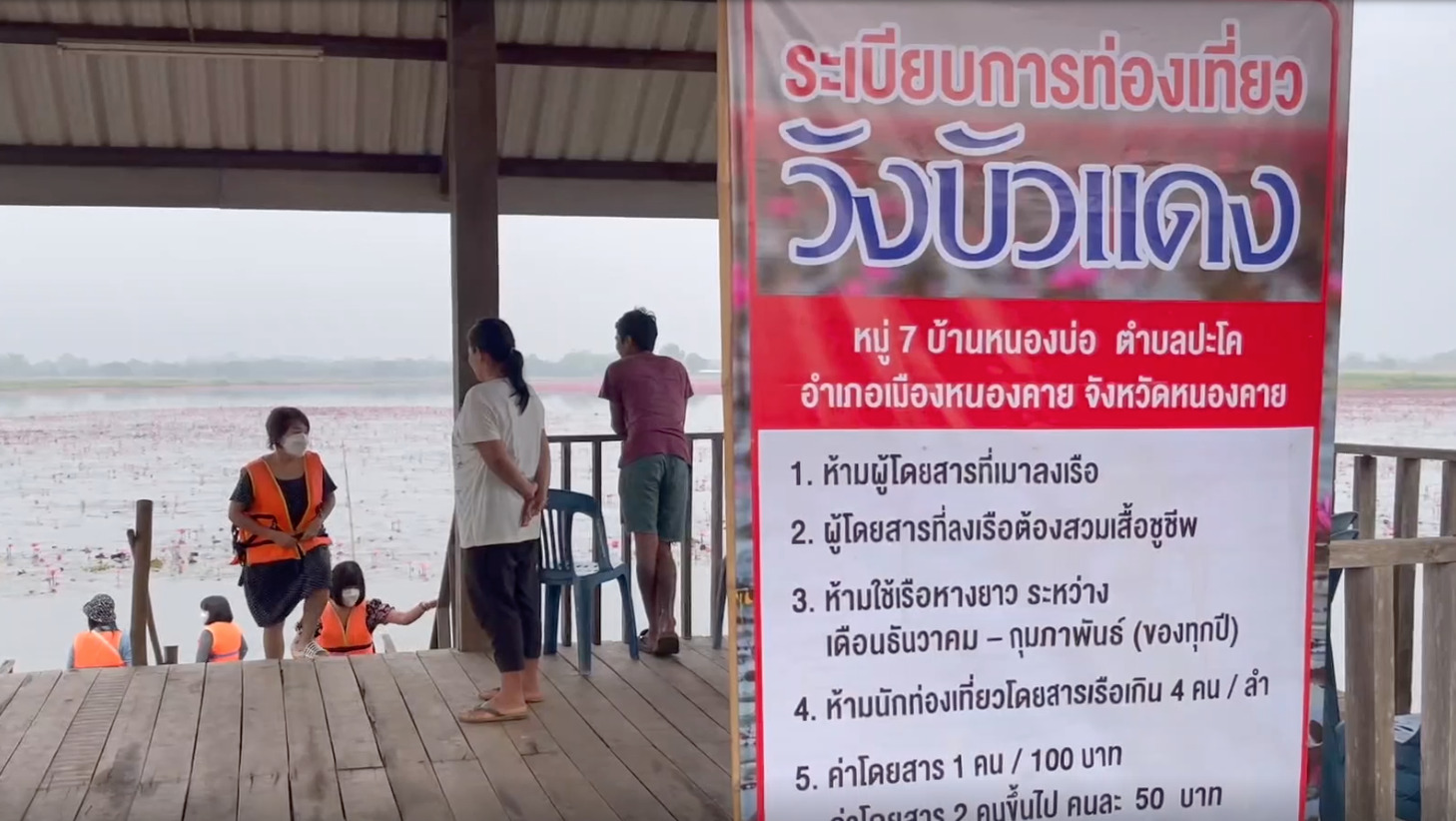 นายชัยมงคล คุณาวุฒิ ผู้ใหญ่บ้านบ้านหนองบ่อ ต.ปะโค อ.เมือง จ.หนองคาย กล่าวว่าช่วงนี้อากาศเย็น บัวแดงบานสวยงาม นักท่องเที่ยวเดินทางเข้ามาท่องเที่ยวไม่ขาดสาย พื้นที่แห่งนี้มีบัวแดงกำลังออกดอกบานสะพรั่งสร้างความสวยงาม ตนและชาวบ้านต่างพากันนำเรือออกมาที่ให้บริการกับนักท่องเที่ยว โดยคิดค่าบริการ ถ้ามาคนเดียวเหมาลำ 100 บาท หากมา 2 คน จะคิดค่าบริการคนละ 50 บาท โดยแต่ละลำจะอนุญาตให้นั่งเพียง 4 -5 คนเท่านั้น และทุกคนที่ลงเรือจะต้องสวมเสื้อชูชีพเท่านั้นเพื่อความปลอดภัย ส่วนใหญ่นักท่องเที่ยวจะมาเป็นครอบครัว และกลุ่มเพื่อน ในขณะที่อุณหภูมิทั่วที่จังหวัดหนองคายยังคงหนาวเย็น โดยอุณหภูมิต่ำสุดช่วงเช้าอยู่ที่ 18-20 องศาฯ งผลดีต่อบัวแดงที่ผุดดอกขึ้นมารับอากาศหนาวเย็นและแสงแดดในช่วงเช้าหนาแน่น ดอกใหญ่ สีชมพูสวยงามและเป็นที่ประทับใจของนักท่องเที่ยวเป็นอย่างมาก.-สำนักข่าวไทย