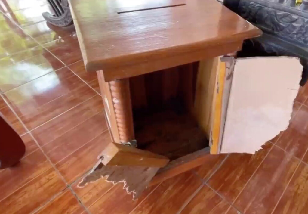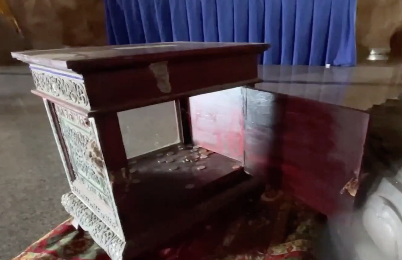 ภาพจากกล้องวงจรปิดภายในวัดอุดมมงคล (วัดหลวงพ่ออุตะมะ) ม.4 ต.ท่าไข่ อ.เมืองฉะเชิงเทรา เวลาประมาณ 02.00 น.วันที่ 24 ม.ค.65 เห็นพฤติกรรมของคนร้ายขี่รถจักรยานยนต์เข้ามาภายในวัด ก่อนจะตระเวนงัดตู้บริภาคภายในศาลาเอนกประสงค์ของทางวัด จากนั้นคนร้ายใช้บันไดปีนหน้าต่างเข้าไปในโบสถ์ทรงเรือ นั่งงัดตู้บริจาคภายในโบสถ์ที่มีมากกว่า 10 ตู้ ก่อนจะถอดเสื้อออกด้วยความสบายใจ นั่งนับเงินแล้วที่เป็นธนบัตรใส่ถุงที่เตรียมมา แล้วเดินออกมาถอดบานเกล็ดบริเวณด้านหน้าโบสถ์ โดยไม่รู้เลยว่ากล้องวงจรปิดภายในโบสถ์ได้บันทึกพฤติกรรมของคนร้ายไว้หมดแล้ว