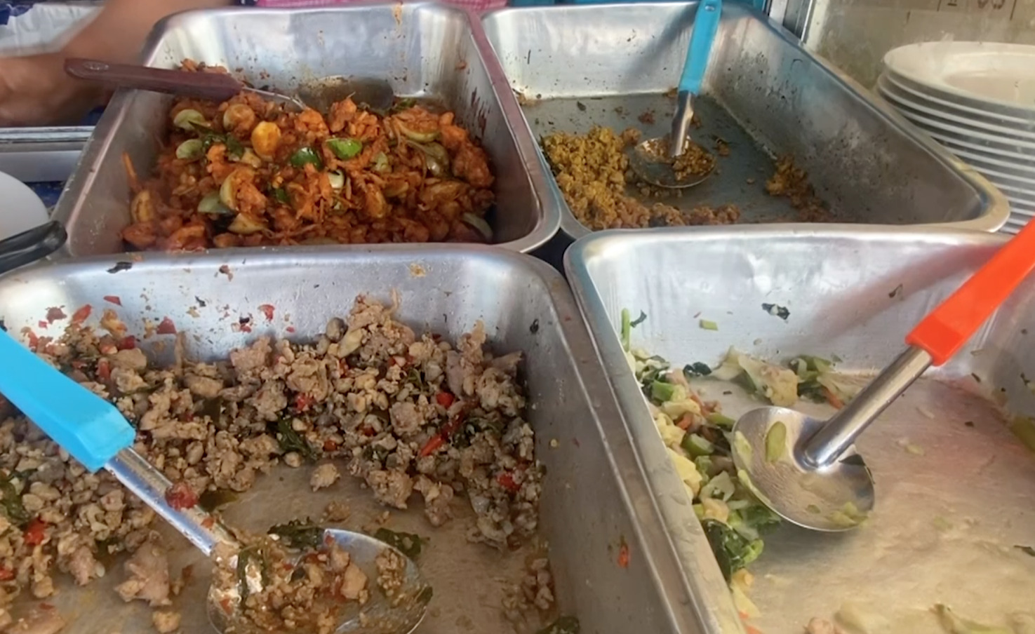 แม่ค้าบอกว่าร้านข้าวแกงใช้คนในครอบครัวพ่อแม่ลูกไม่ได้จ้างใครก็เลยอยู่ได้ ข้าวแกงแต่ละจานเราให้เยอะมาก เพราะอยากให้เขาอิ่มไปเลยในจานเดียว ทางร้านเรายังมีกล้วยไว้ให้ลูกค้า กินฟรีและน้ำดื่มก็ฟรีด้วย