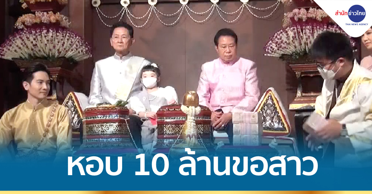 เชียงใหม่ 25 ม.ค.- งานแต่งชุดใหญ่ไฟกระพริบ ลูกชายอดีต รมช.กระทรวงเกษตรและสหกรณ์ ยกขันหมากสินสอดเงินสด 10 ล้านบาท ทองคำแท่งอีก 80 บาท ไปขอคุณหมอสาวเป็นลูกสะใภ้