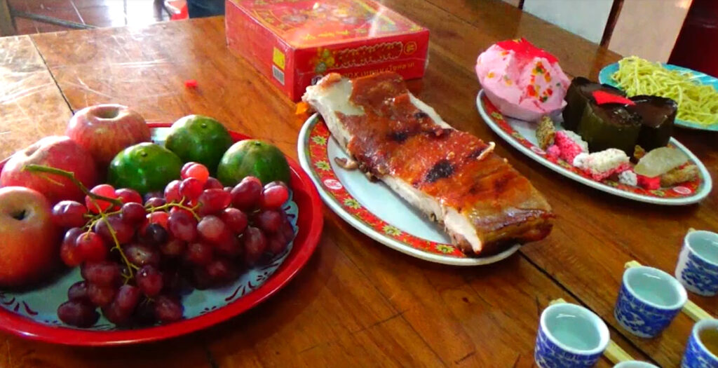 ของขึ้นชื่ออย่างหมูย่าง ยอดขายปีนี้ถือว่ายังคงคึกคักพอสมควร แม้จะน้อยกว่าปีที่ผ่านมา เจ้าของร้าหมูย่าง บอกว่า ยอดสั่งหมูย่างปีนี้น้อยลงกว่าปีที่แล้ว เนื่องด้วยสภาพเศรษฐกิจ และราคาหมูก็แพงขึ้น ลูกค้าจากที่เคยสั่งเป็นตัว ก็เปลี่ยนสั่งเป็นกิโลแทน ขายกิโลกรัมละ 550 บาท วันนี้ก็ได้เตรียมย่างหมูไว้ประมาณ 70 กว่าตัว ลดน้อยลงกว่าปีที่แล้ว จาก 100 กว่าตัว ส่วนราคาแพงกว่าปีที่แล้ว ตัวละประมาณ 2,000-3,000 บาท อยู่ที่น้ำหนักของหมูย่าง เฉลี่ยตัวละประมาณ 7,000-10,000 บาท ร้านก็ยังพยายามตรึงราคาไว้ไม่ขึ้นสูงจนเกินไป แต่ก็ต้องปรับราคาขึ้นบ้างเพราะด้วยสภาพของราคาหมูเป็นที่แพงขึ้น. – สำนักข่าวไทย