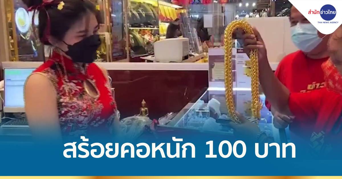 ที่ผ่านมา เคยทำสร้อยคอทองคำหนัก 60 บาท หรือ 1 กิโลกรัมมาแล้ว จึงอยากลองทำน้ำหนัก 100 บาทดูบ้าง โดยช่างผู้ชำนาญของทางร้านทำขึ้นมา เฉพาะแค่ตะขอก็มีน้ำหนักถึง 5 บาทแล้ว ส่วนค่าแรง ทองน้ำหนัก 1 บาท จะอยู่ที่ 1,000 บาท ส่วนเส้นนี้ทอง 100 บาท ก็จะอยู่ที่ 1 แสนบาท. – สำนักข่าวไทย