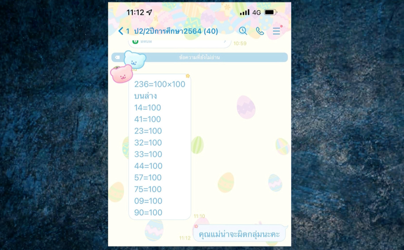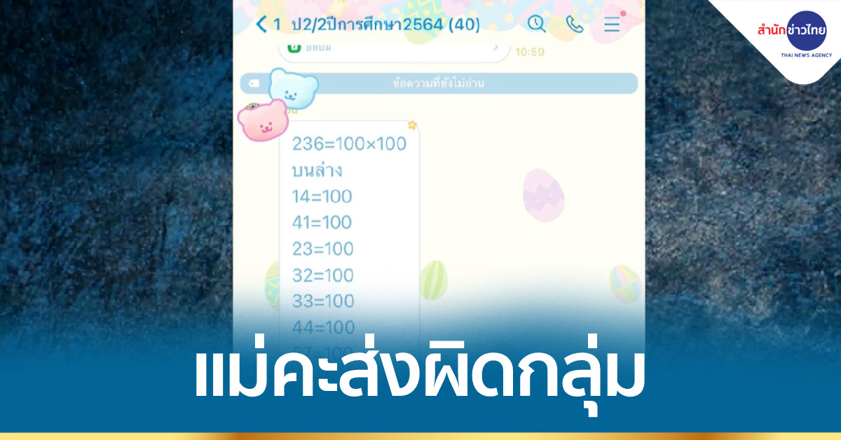 สำนักข่าวไทย 2 ก.พ.- คุณแม่มือลั่น! ส่งโพยซื้อหวยยาวเหยียดในไลน์กลุ่มผู้ปกครอง ตอนแรกคุณแม่ท่านอื่นคิดว่าสูตรคูณ พอซูมดู อ้าว! เหมือนจะผิดกลุ่มนะคะ