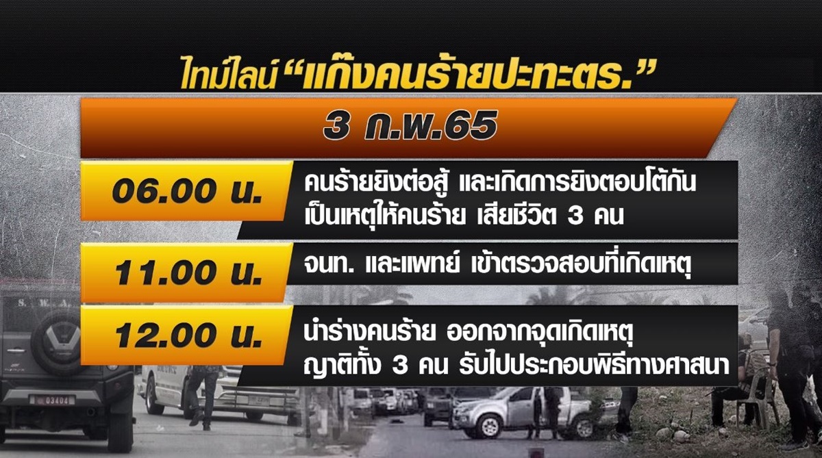 12.00 น. นำร่างคนร้ายออกจากที่เกิดเหตุไปยัง รพ.จะนะ และญาติทั้ง 3 ราย มารับไปประกอบพิธีทางศาสนา