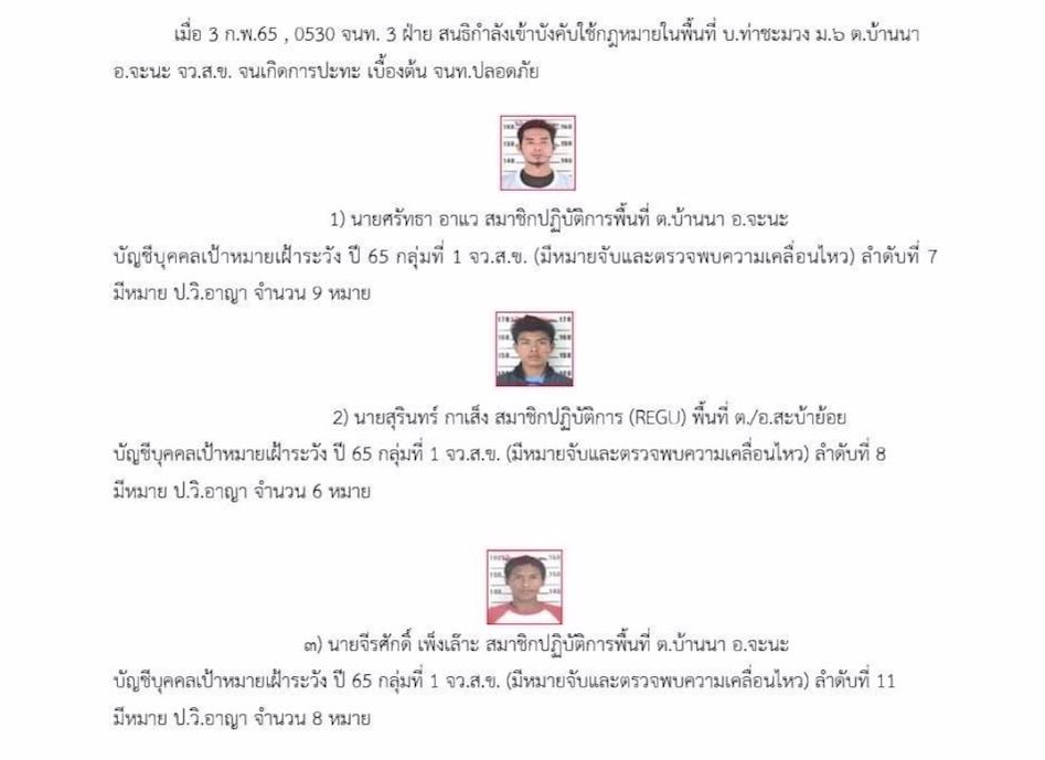 05.30 น. เจ้าหน้าที่สนธิกำลัง 3 ฝ่าย ทั้งทหาร ตำรวจ และฝ่ายปกครอง ปิดล้อมพื้นที่เป้าหมาย บ้านท่าชะมวง บ้านโคกเค็ด หมู่ 6 ต.บ้านนา อ.จะนะ จ.สงขลา