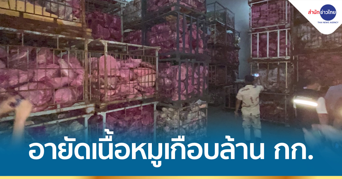 นครปฐม 5 ก.พ.- เจ้าหน้าที่หลายหน่วยงานบุกตรวจห้องเย็นใน จ.นครปฐม พบเนื้อหมูไม่ทราบที่มาและไม่มีใบเคลื่อนย้าย เกือบ 1 ล้านกิโลกรัม จึงยึดอายัดไว้ และแจ้งข้อกล่าวหาตาม พ.ร.บ.ระบาดสัตว์ พ.ศ.2558 ตามมาตรา 22 โทษจำคุก 2 ปี ปรับไม่เกิน 40,000 บาท หรือทั้งจำทั้งปรับ และความผิดตาม พ.ร.บ.ควบคุมการฆ่าสัตว์เพื่อการจำหน่ายเนื้อสัตว์ พ.ศ.2559 มีความผิดตามมาตรา 38 โทษจำคุก 1 ปี ปรับไม่เกิน 100,000 บาท หรือทั้งจำทั้งปรับ