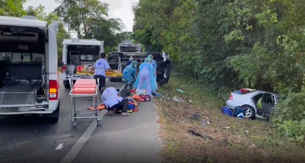 ตำรวจ สภ.ราชกรูด อ.เมืองระนอง และเจ้าหน้าที่กู้ภัย เร่งช่วยเหลืออุบัติเหตุ รถกระบะชนกับรถยนต์บริเวณทางโค้งถนนเพชรเกษมขาออก พื้นที่ ม.1 บ้านละออง ต.ราชกรูด ห่างจากวัดบกต้อไปประมาณ 1 กิโลเมตร ทำให้มีผู้บาดเจ็บสาหัส 3 คน ติดอยู่ในรถ ต้องใช้เครื่องตัดถ่างช่วยเหลือ และนำตัวส่งโรงพยาบาลระนอง และยังมีผู้เสียชีวิตอีก 2 คน ขณะที่รถกระบะคู่กรณีบาดเจ็บเล็กน้อย