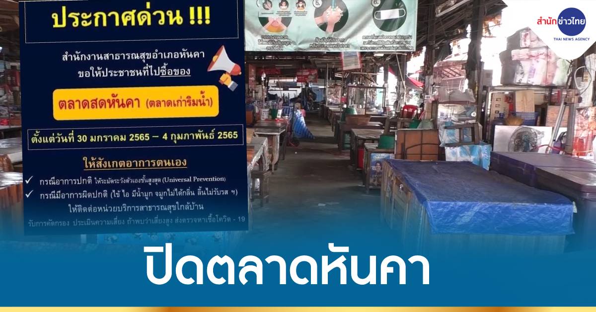 สำนักงานสาธารณสุขอำเภอหันคา จังหวัดชัยนาท สั่งปิดตลาดสดหันคา หรือตลาดเก่าริมน้ำ เป็นเวลา 5 วัน เพื่อทำความสะอาดฆ่าเชื้อโรค และควบคุมการแพร่ระบาดของโรคติดเชื้อไวรัสโควิด-19 หลังพบพ่อค้าแม่ค้าในตลาดติดเชื้อโควิด-19 แล้ว 40 คน และมีกลุ่มเสี่ยงสูงกักตัวเฝ้าดูอาการ จำนวน 198 คน พร้อมทั้งประกาศให้ประชาชนที่เดินทางไปซื้อของในตลาดสดหันคา ช่วงระหว่างวันที่ 30 มกราคม 64 ถึงวันที่ 4 กุมภาพันธ์ 2565 ให้สังเกตอาการตนเอง หากพบมีอาการผิดปกติ มีไข้ ไอ มีน้ำมูก จมูกไม่ได้กลิ่น ลิ้นไม่รับรส ให้ติดต่อหน่วยบริการสาธารณสุขใกล้บ้าน เพื่อเข้ารับการคัดกรองประเมินความเสี่ยง และตรวจหาเชื้อโควิด-19.-สำนักข่าวไทย